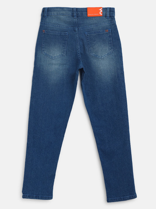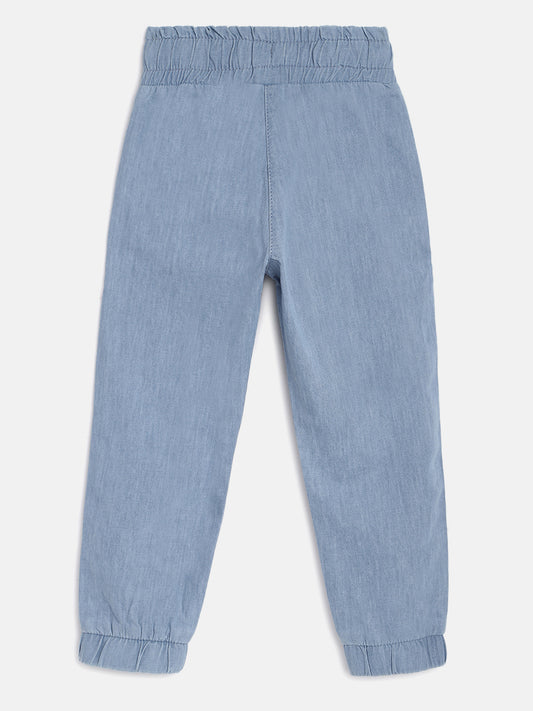 Girls Medium Blue Wide Leg Fit Cotton Washed Jeans
