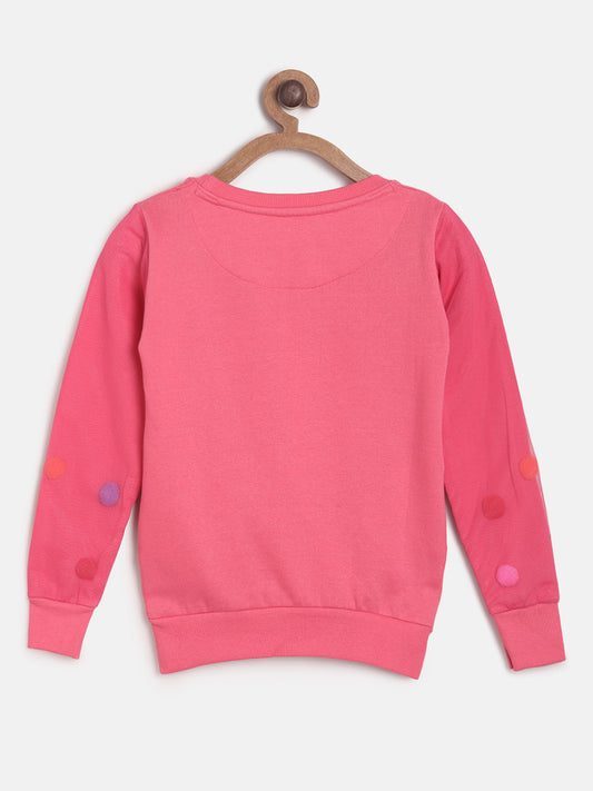 Girls Pink Embroidered Full Sleeve Sweatshirt