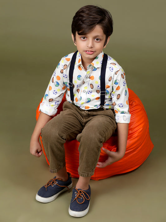 Boys Brown Lycra Blend Slim Fit Solid Trouser With Suspender