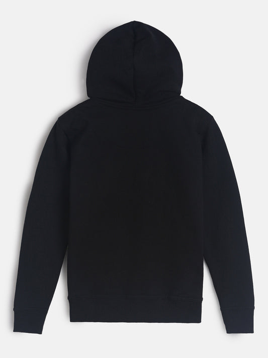 Girls Black Regular Fit Printed Sweatshirt With Hood