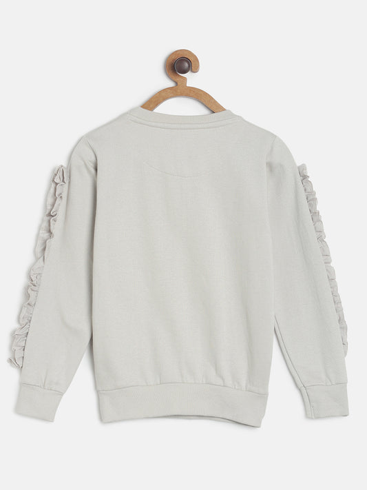 Girls Light Grey Printed Cotton Regular Fit Sweatshirt