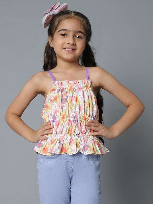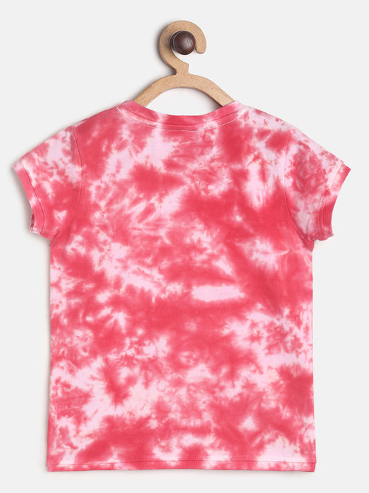 Girls Printed Dark Pink Cotton Regular Fit T-Shirts