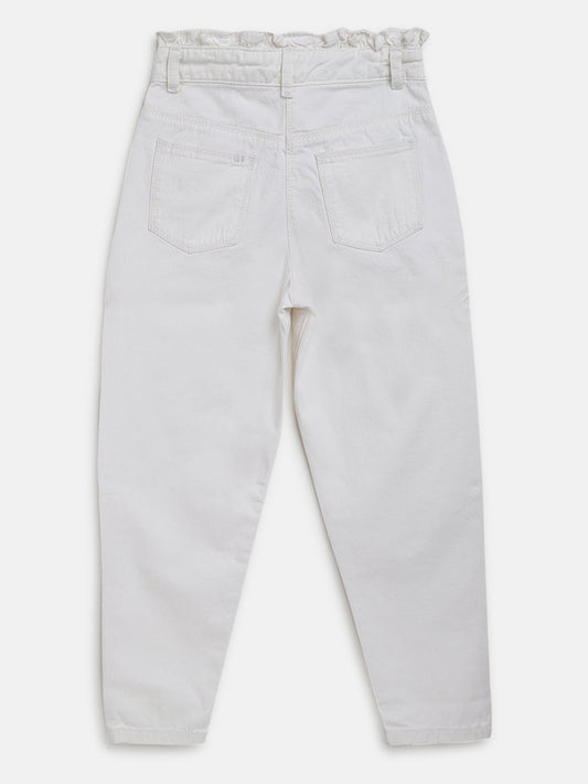 Girls Dark Blue Wide Leg Fit Lycra Washed Jeans