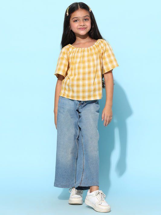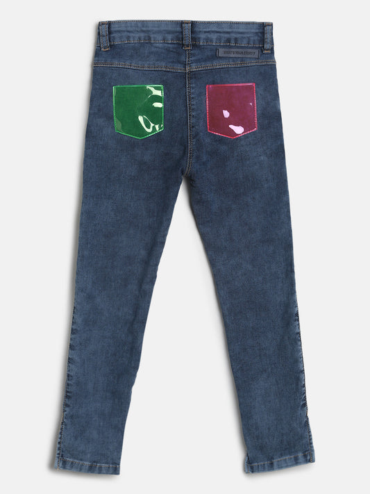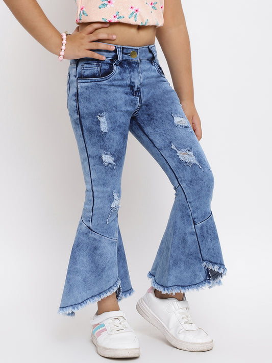 Girls Slim Fit Mid Blue Denim Jeans With Flared