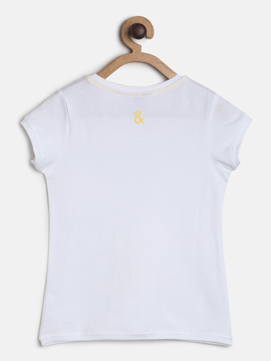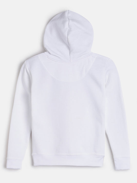 Girls White Regular Fit Printed Sweatshirt With Hood