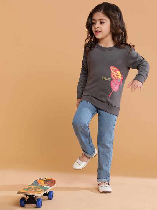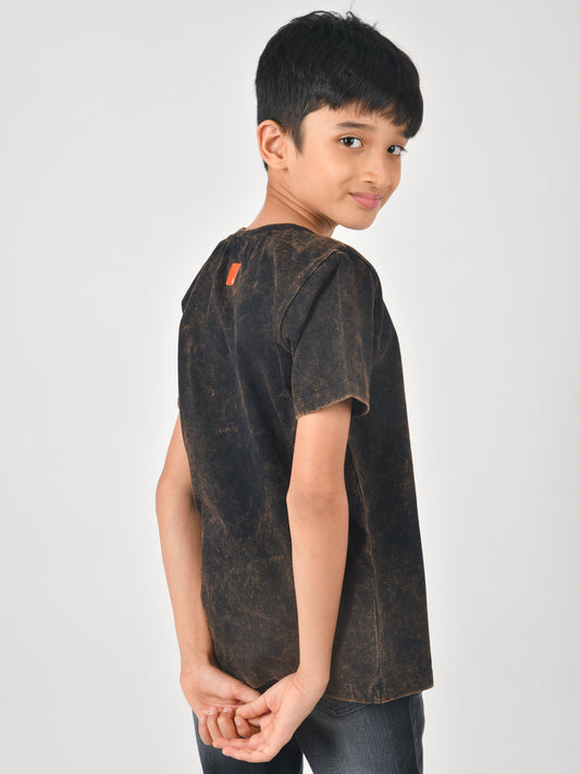 Boys Black Regular Fit Cotton Printed Sweatshirt