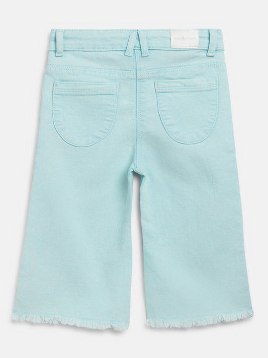 Girls Sky Blue Flare fit Lycra Washed Capri