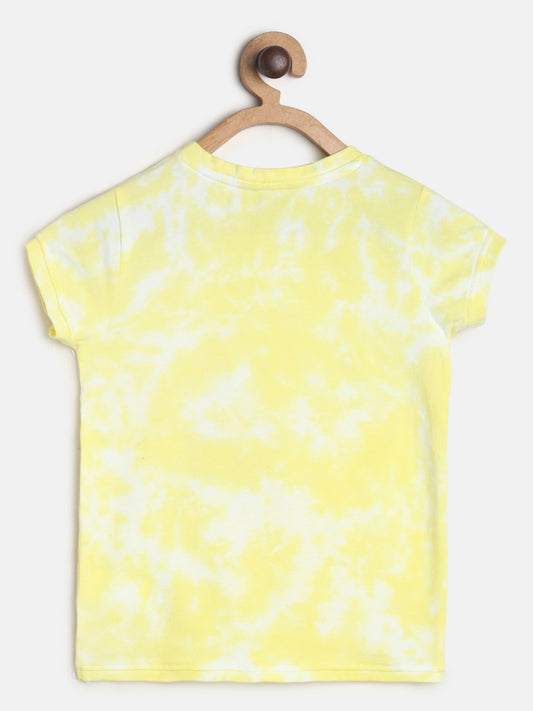 Girls Printed Orange Cotton Regular Fit T-Shirts
