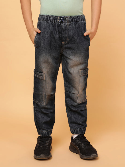 Boys Dark Blue Washed Cotton Poly Parachute Pant