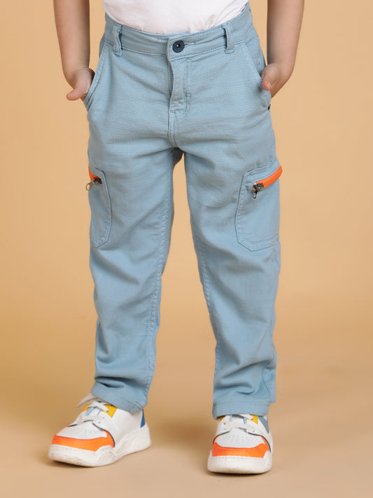 Boys Sky Blue Washed Lycra Tapered Fit Trouser
