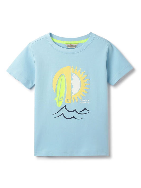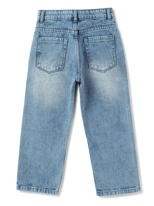 Boys Light Blue Cotton Washed Baggy Fit Jeans