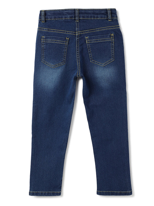 Girls Dark Blue Lycra Sequins Embroidery Slim Fit Jeans