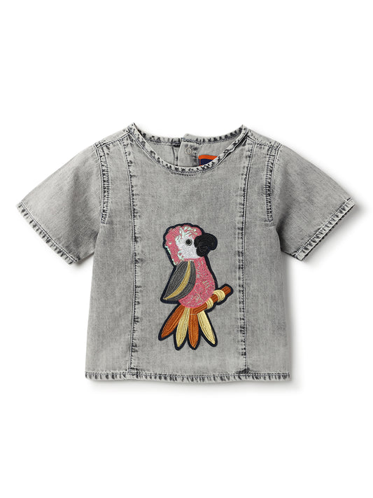 Sold outGirls Grey Sequin Embroidery Cotton