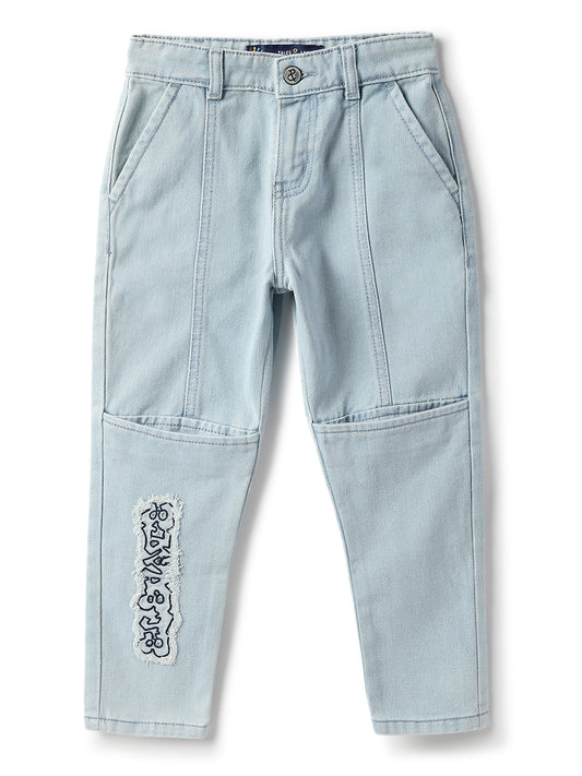 Boys Lycra Denim Washed Blue Carpenter Fit Jeans