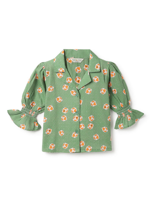 Girls Viscose Green Printed Top