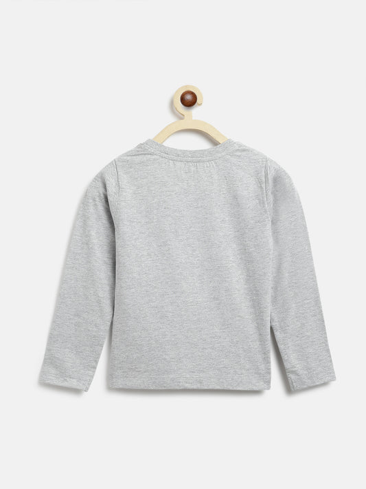 Girls Light Grey Cotton Print Full Sleeves T-shirt