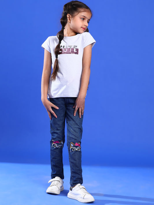 Girls Vanila Lycra Embroidered Regular Fit T-shirt