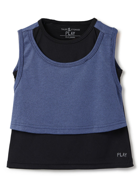 Girls Black & Blue Sleevless T-Shirt