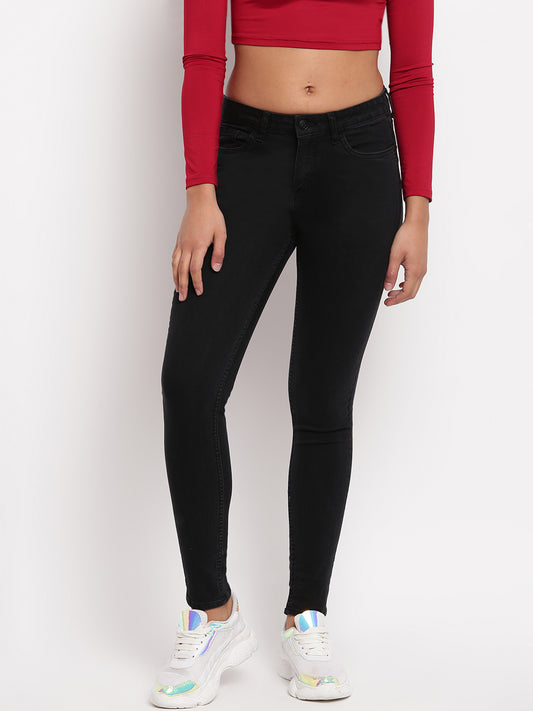 Women Black Skinny Fit Mid Waist Denim Jeans