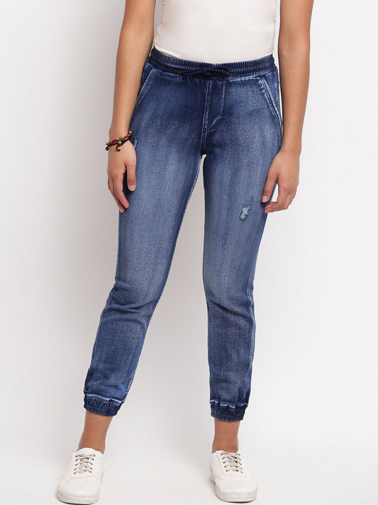 Women Mid Blue Slim Fit Distressed Denim Jeans