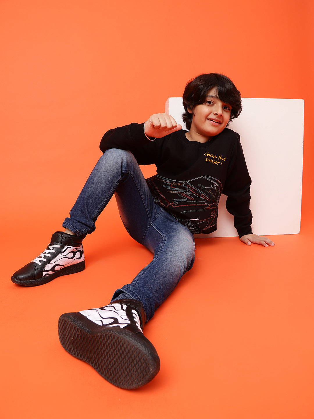 Boys Black Printed Sweatshirt