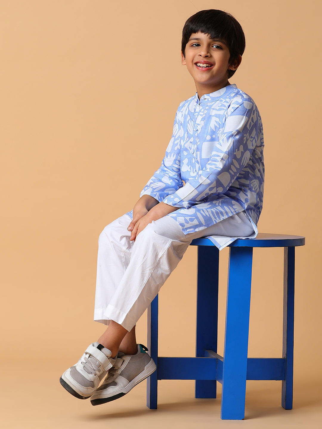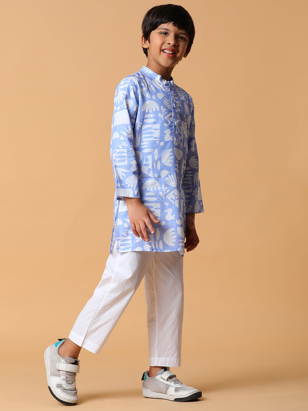Boys Viscose Blue Printed Kurta Set
