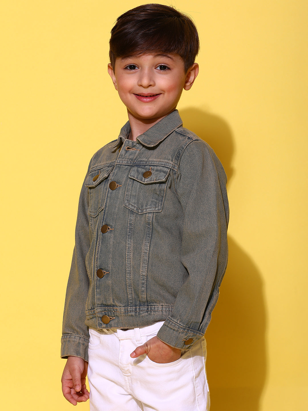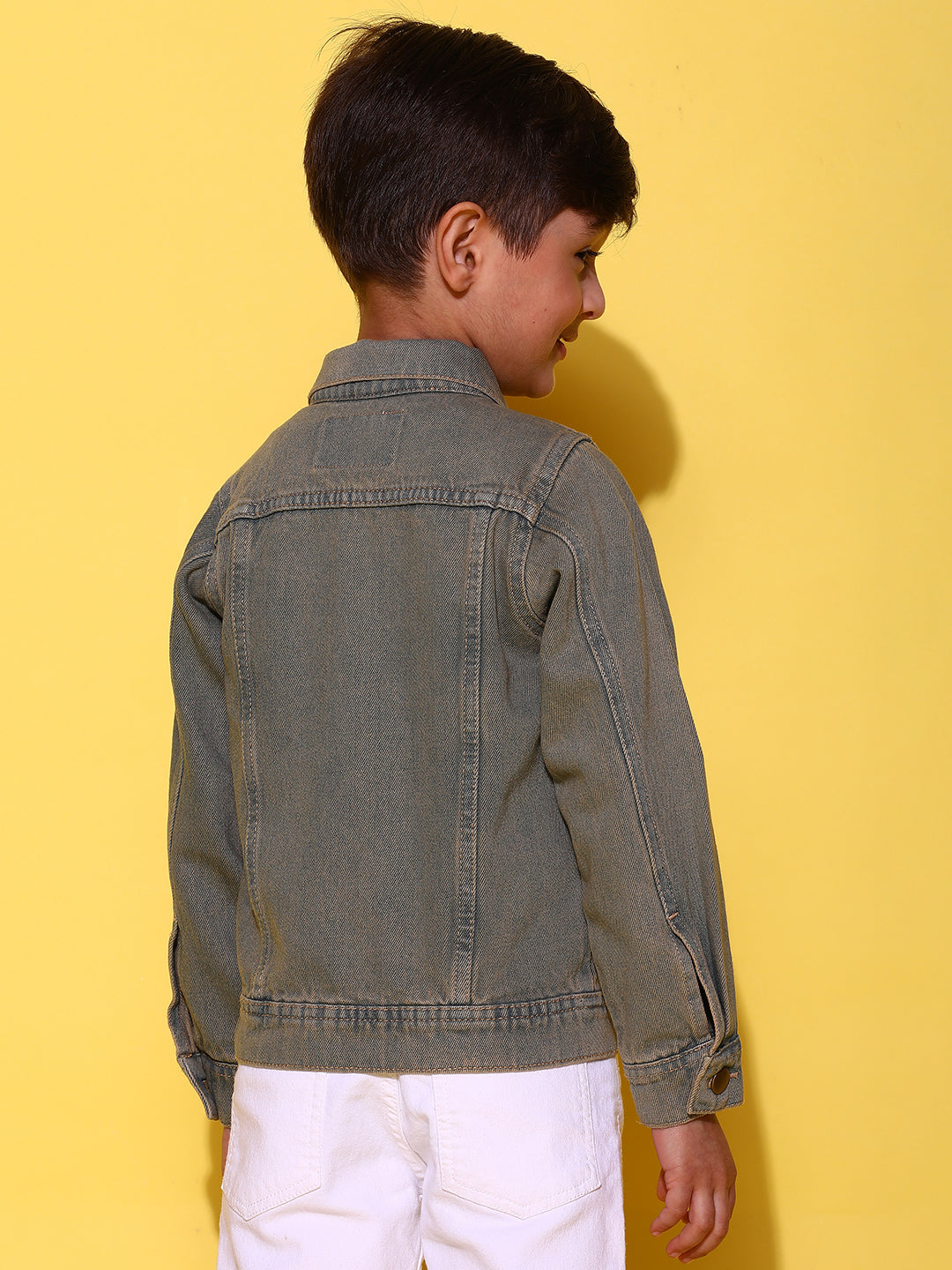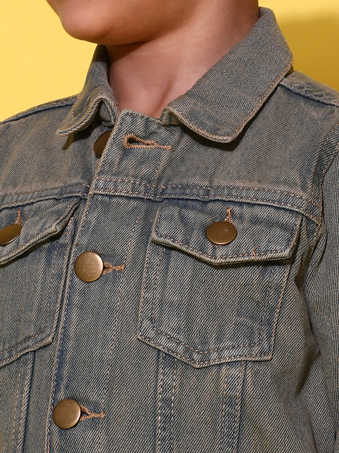Boy Khakhi Cotton Full Sleeves Washed Jacket