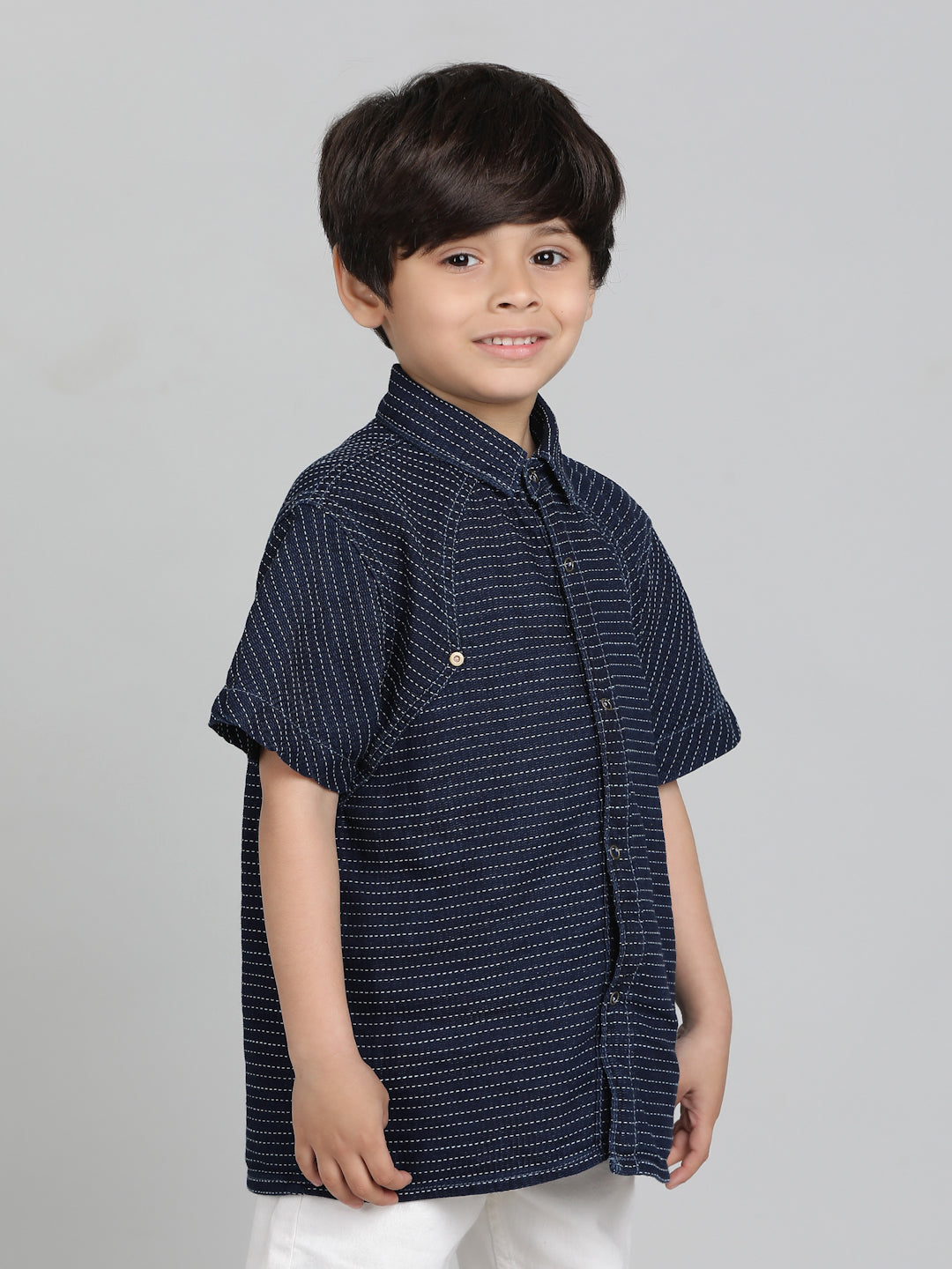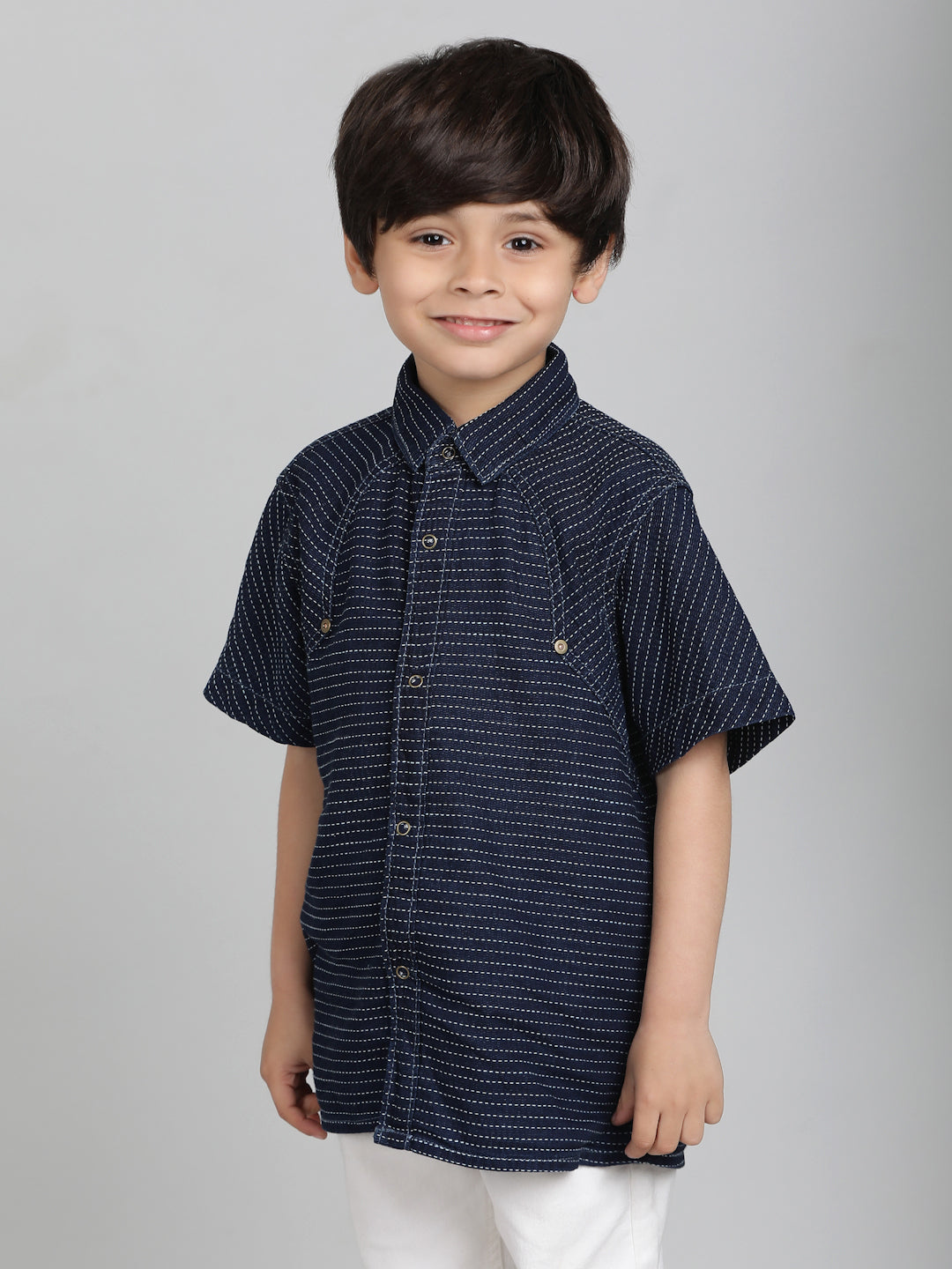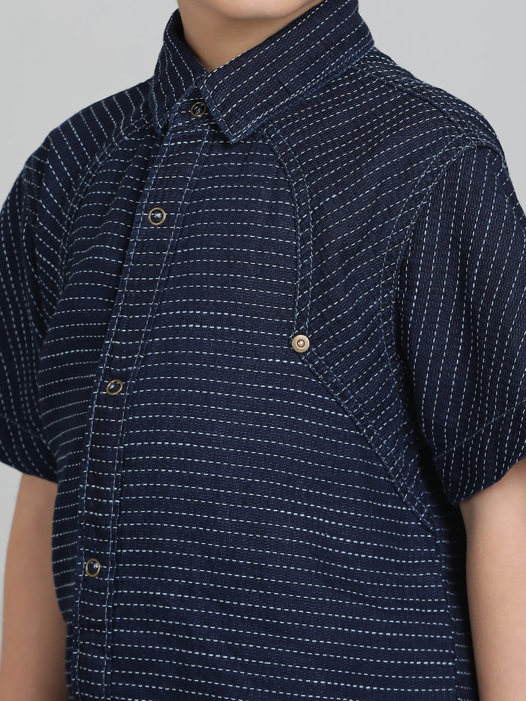 Boys Blue Striped Cotton Half Sleeve Shirt