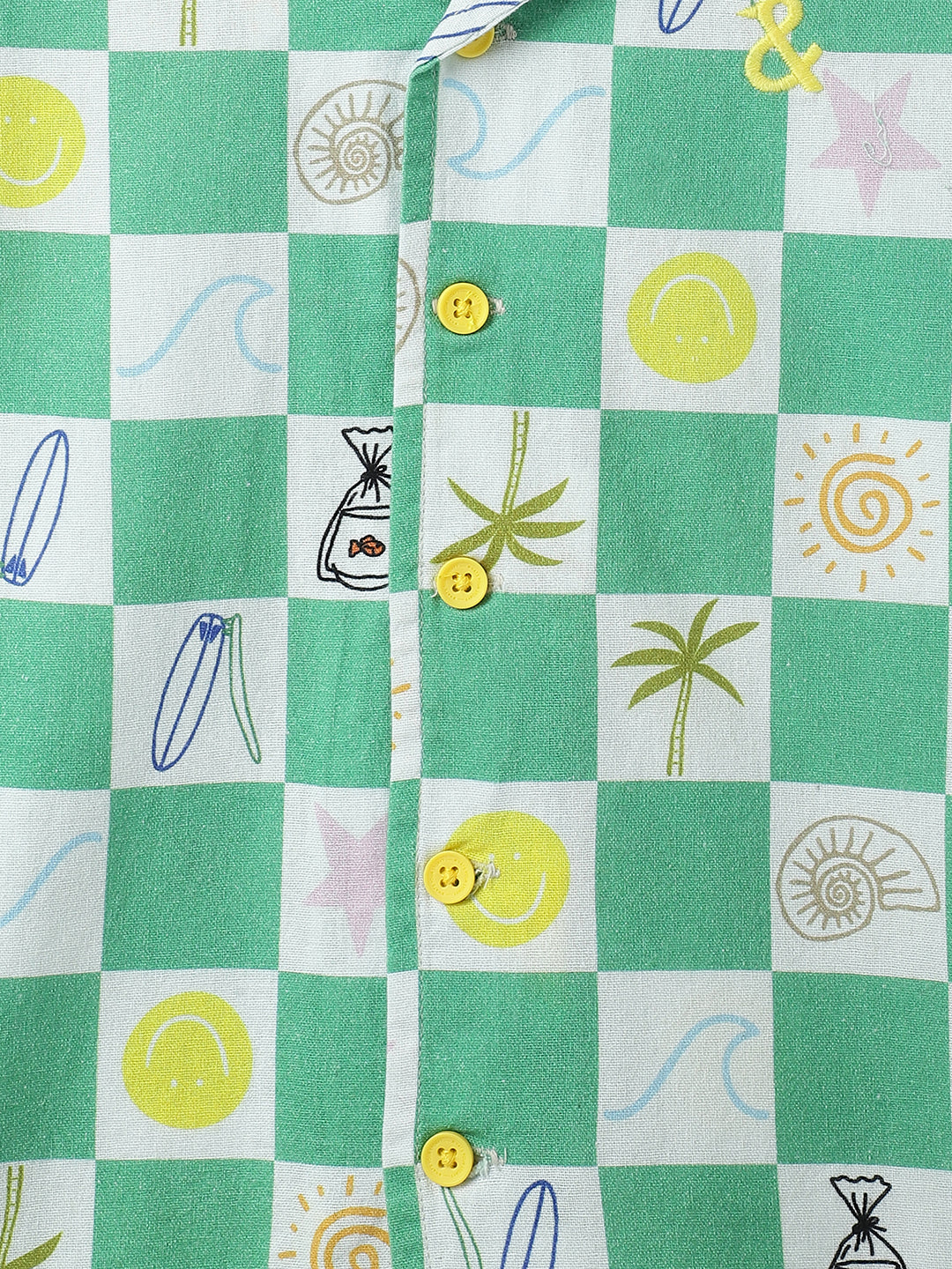 Boys Green Cotton Printed Co-ord Set