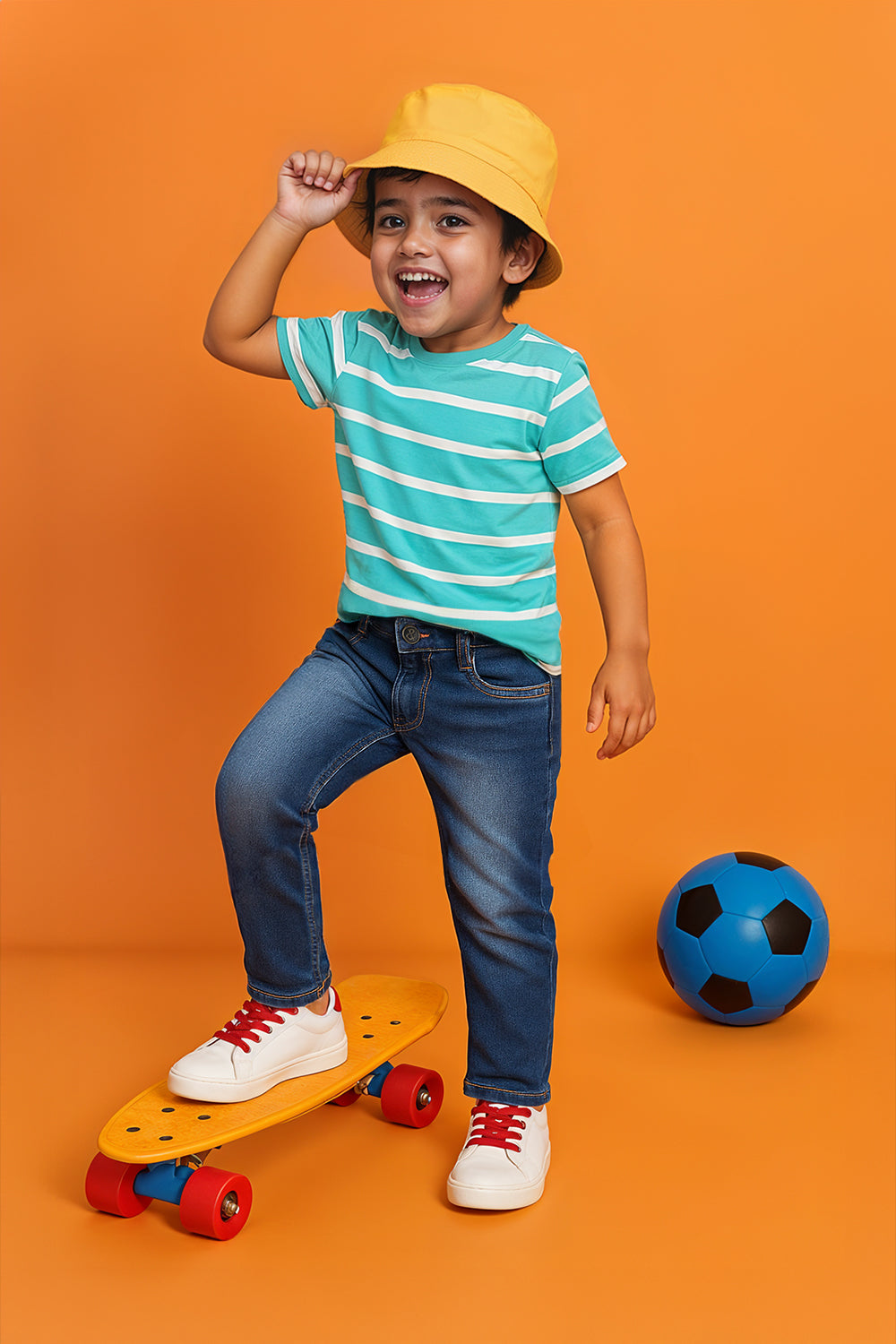 Stretchable Denim Lycra Fabric: Ensures flexibility and all-day comfort for active kids.