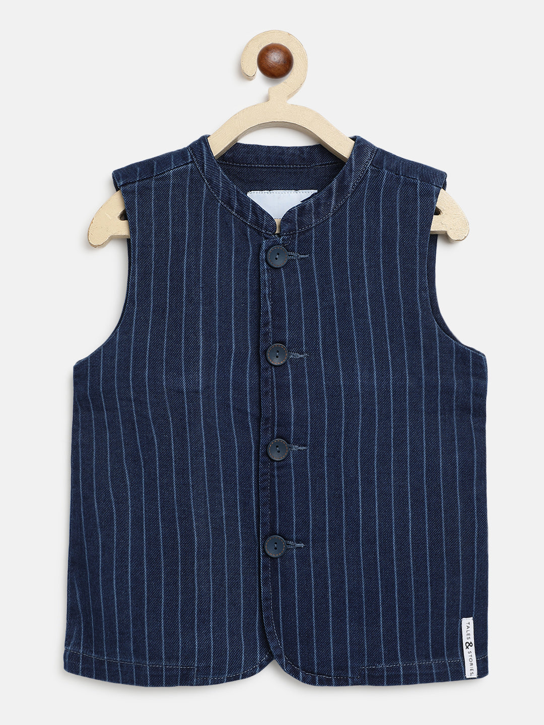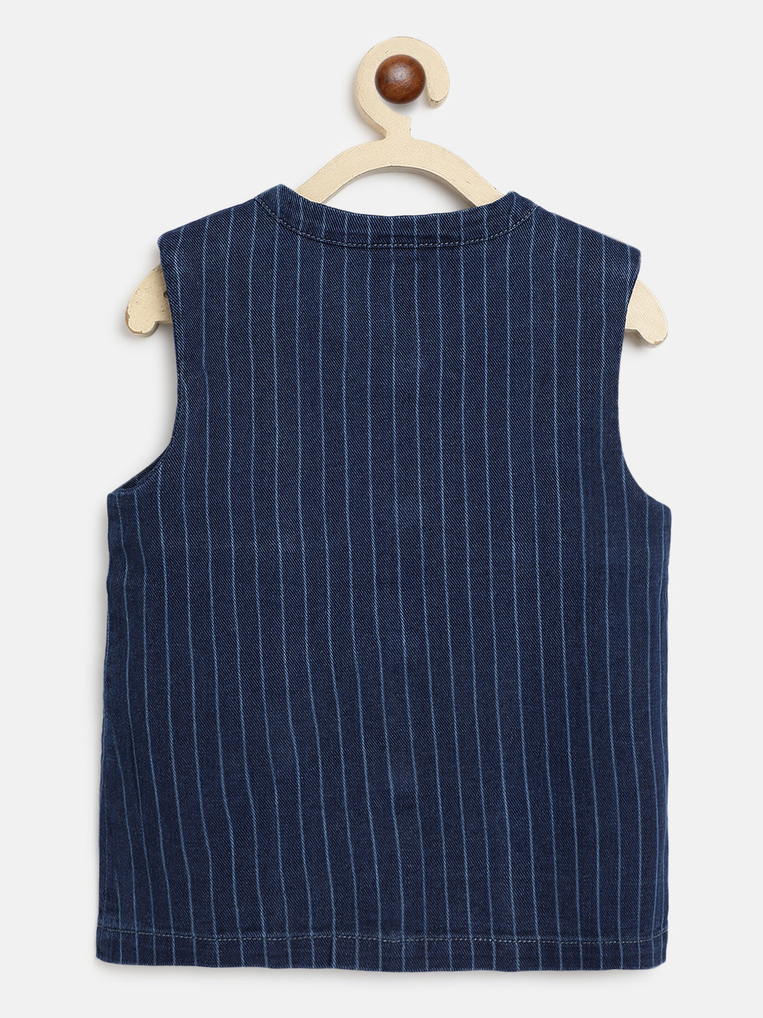 Boys Dark Blue Cotton Stripes Waist Coat