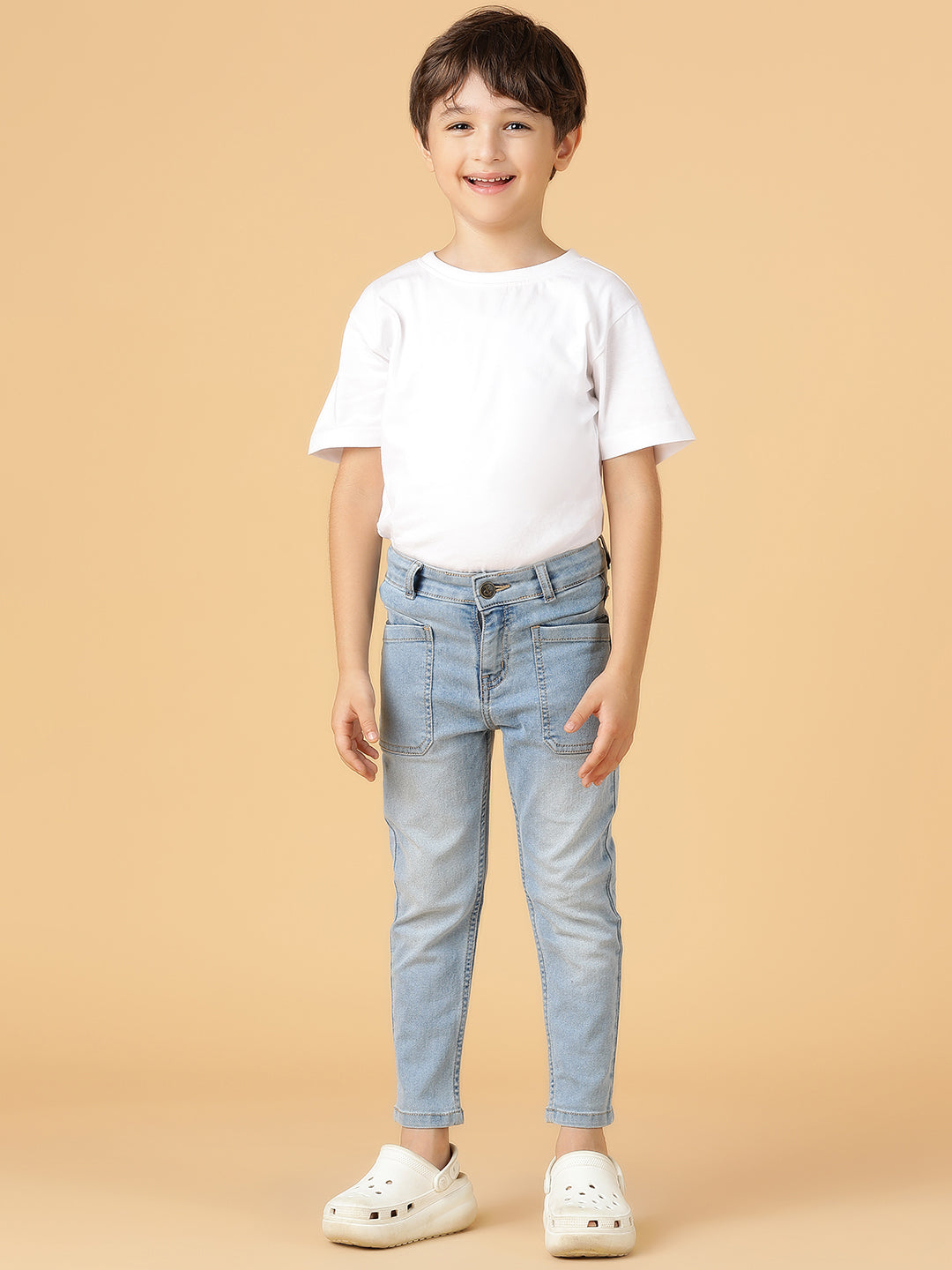 Stretchable Denim Lycra Fabric: Ensures flexibility and all-day comfort for active kids.