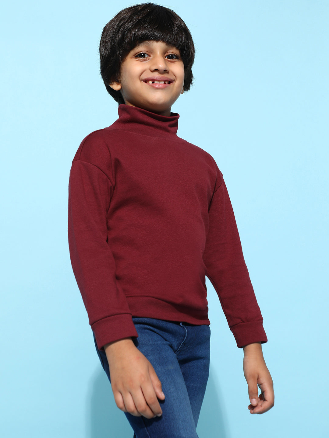 Boys Maroon 100% Cotton Oversized Solid T-shirt