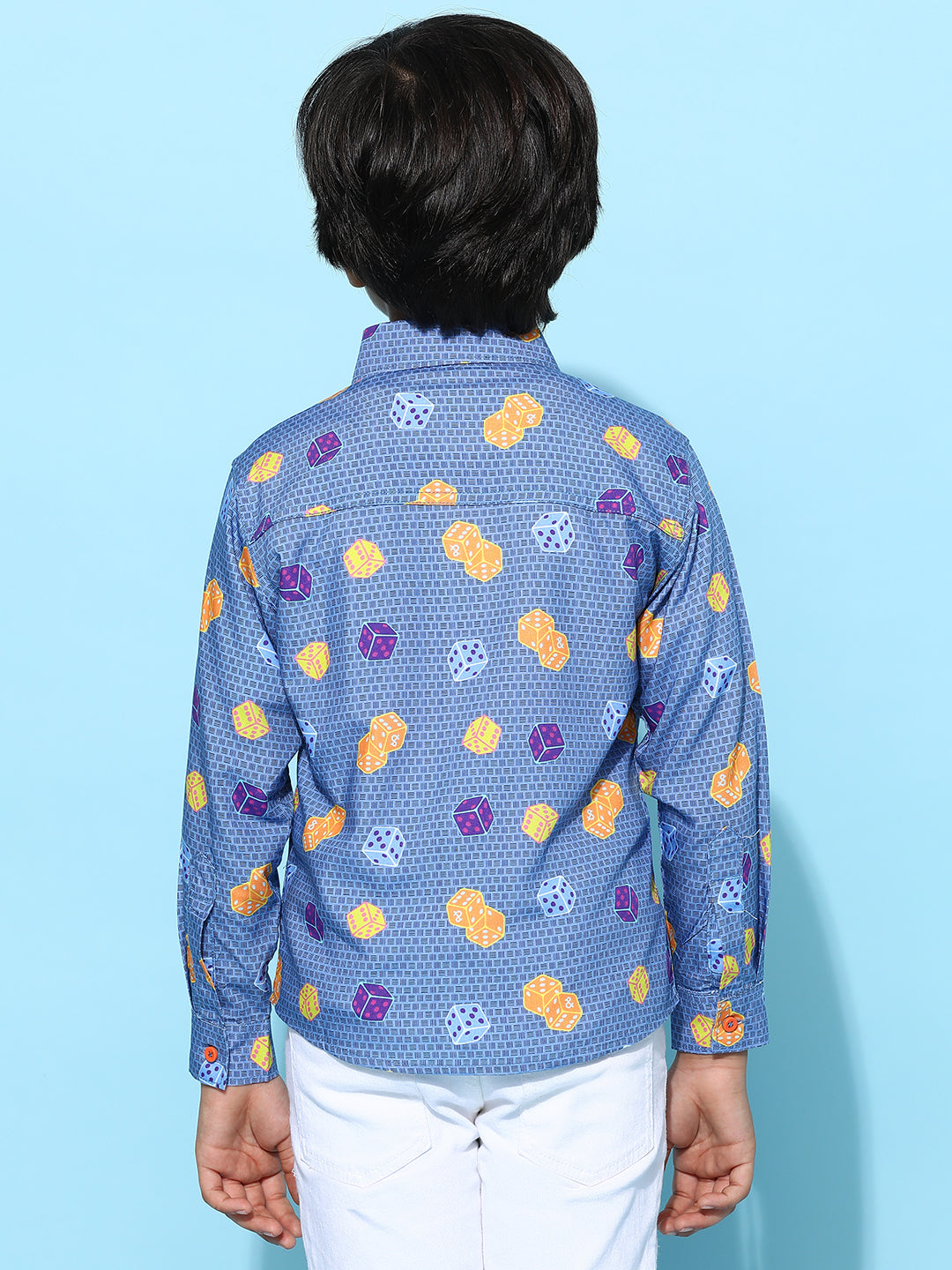 Boys Navy Blue Rayon Printed Regular Fit Shirt