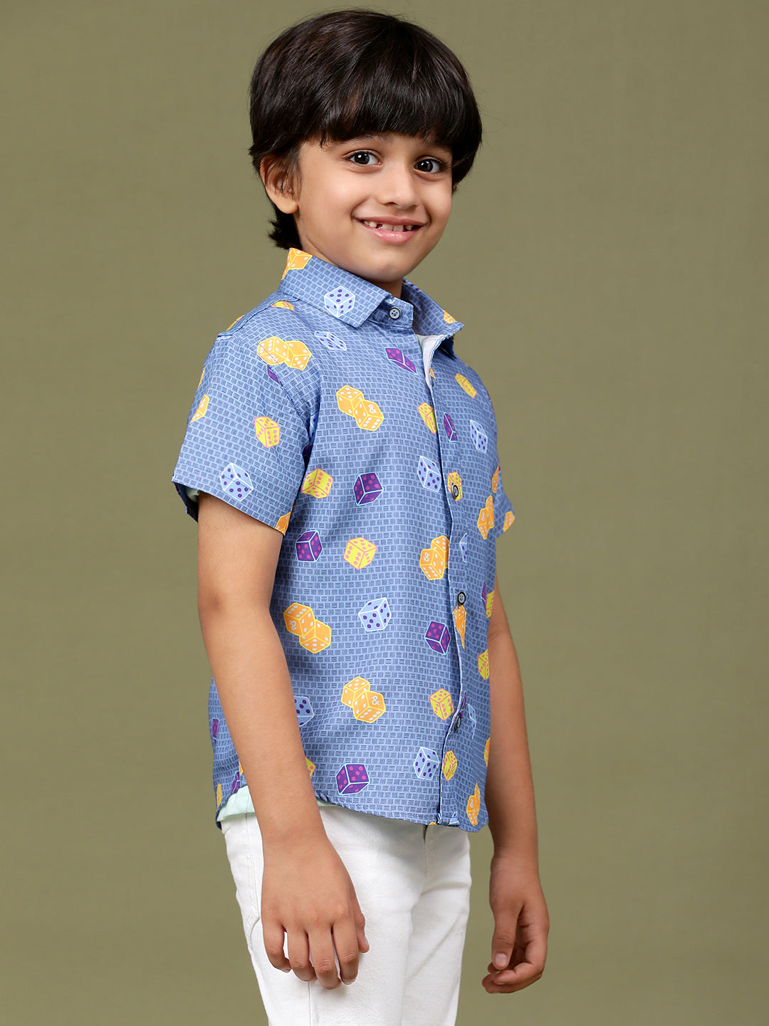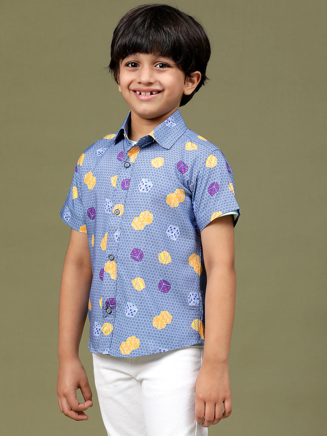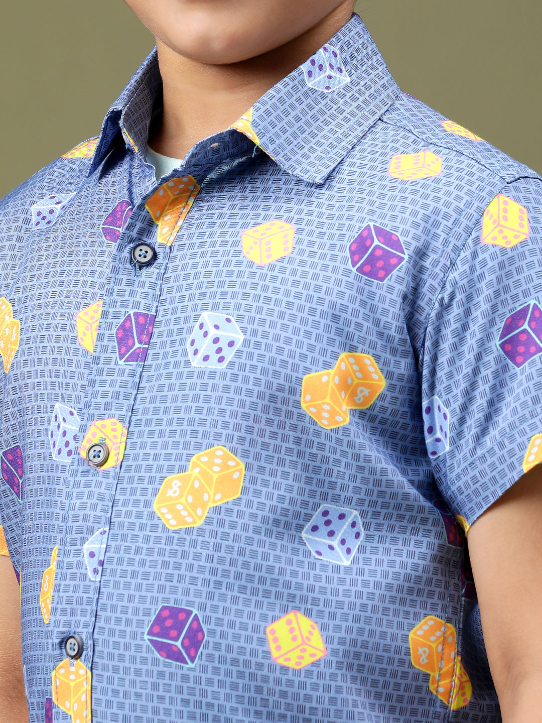 Boys Navy Blue Rayon Printed Regular Fit Shirt