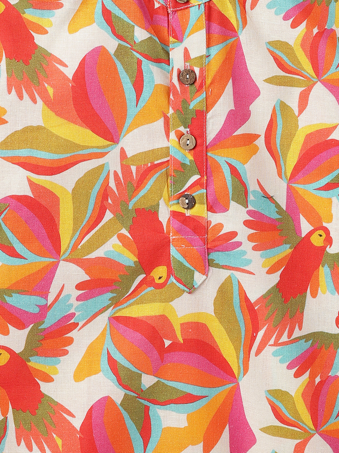 Boys Off White Printed Cotton Mandarin Collar Ethnic Kurta Set