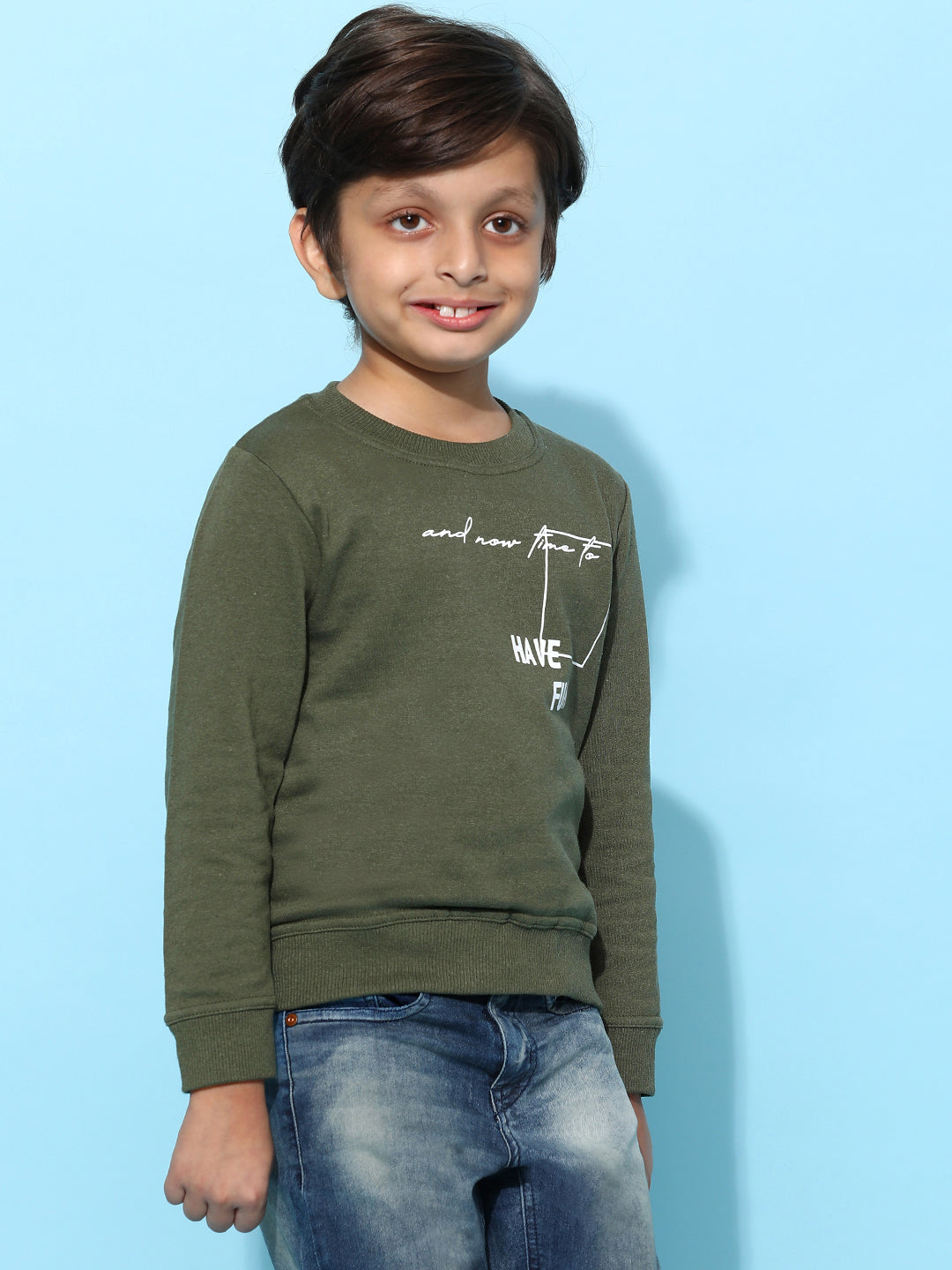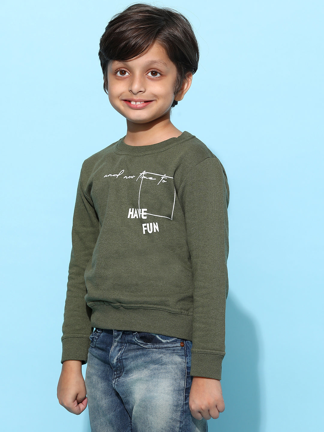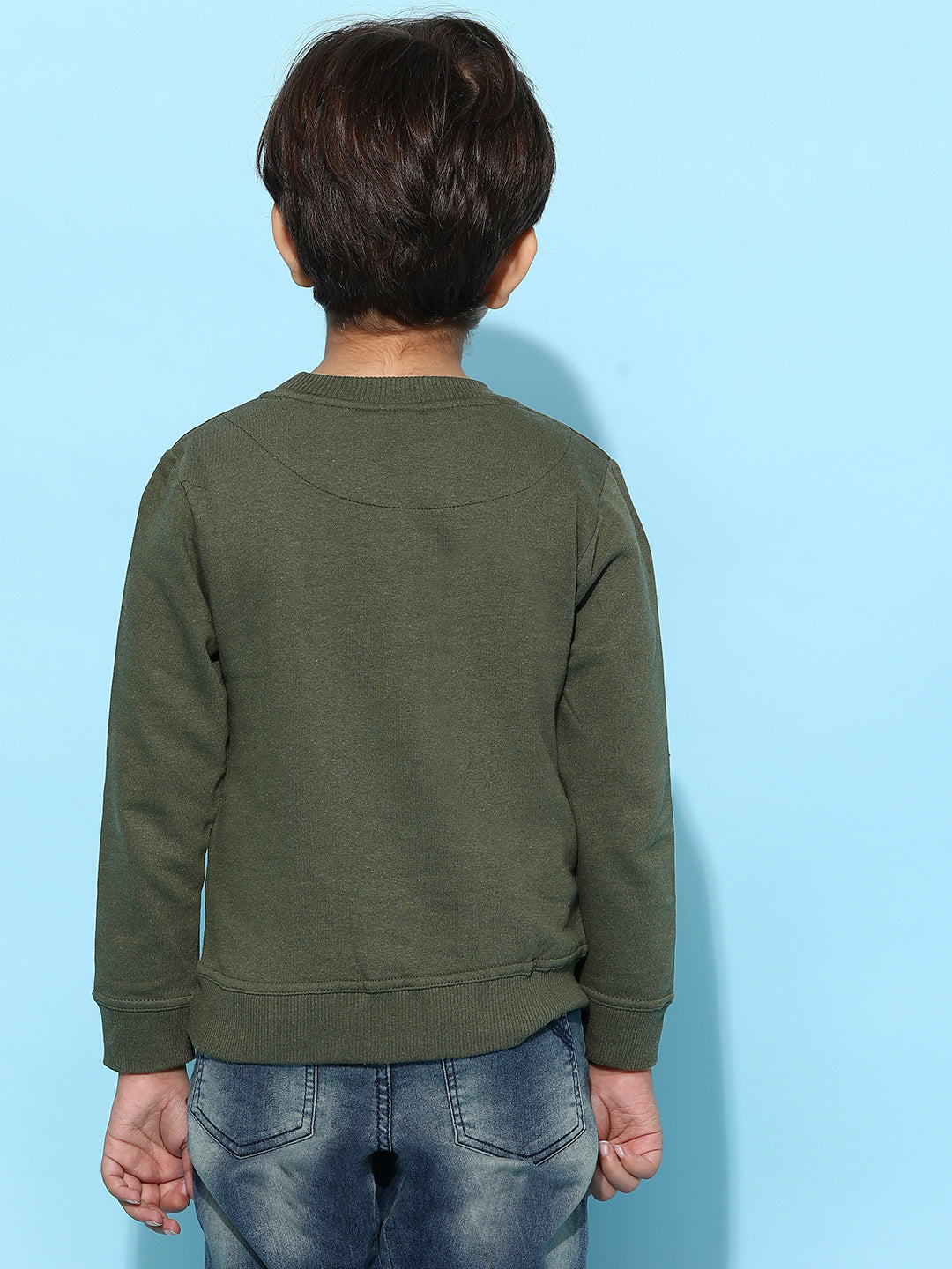 Boys Olive Cotton Solid Sweatshirt