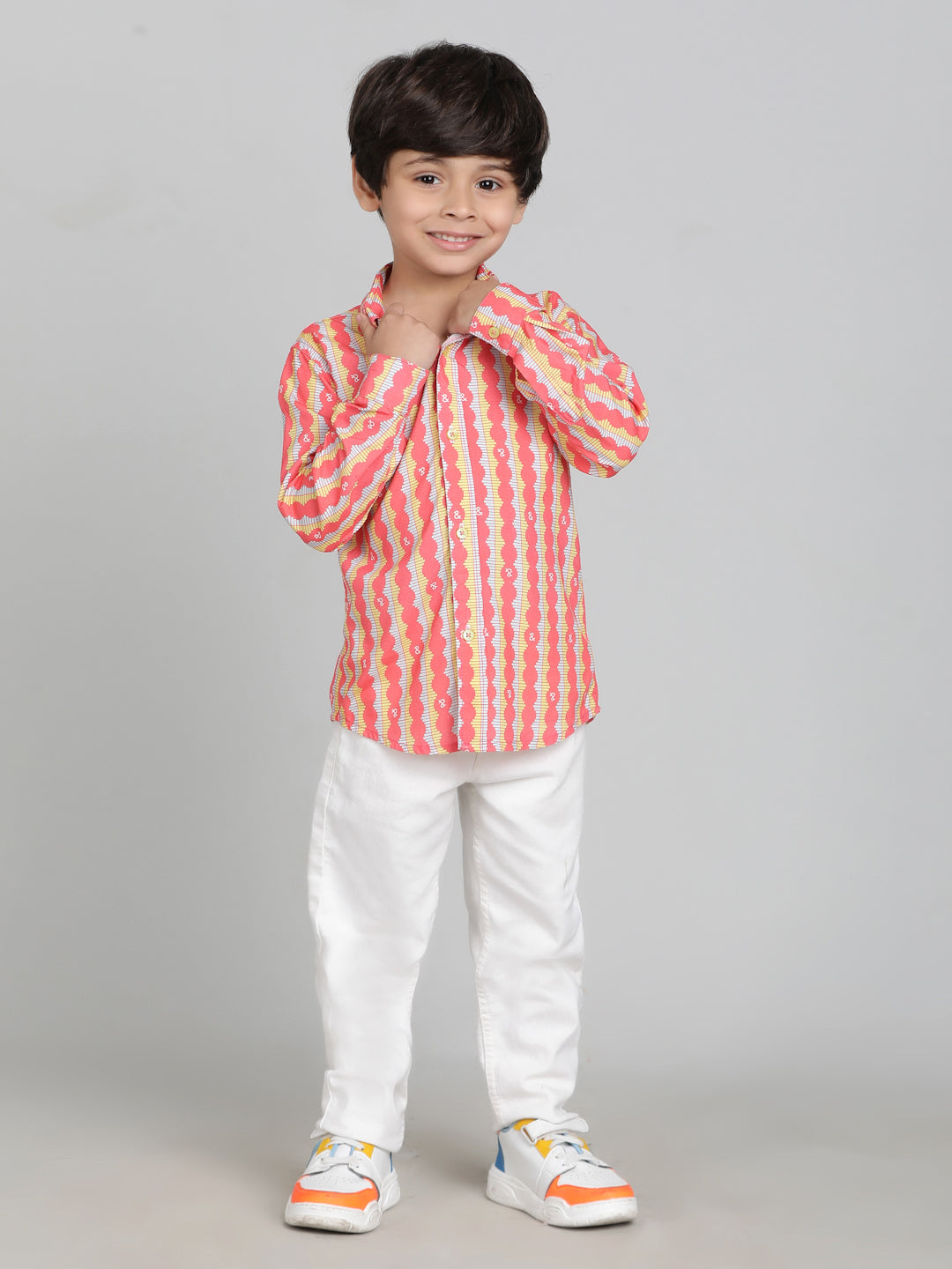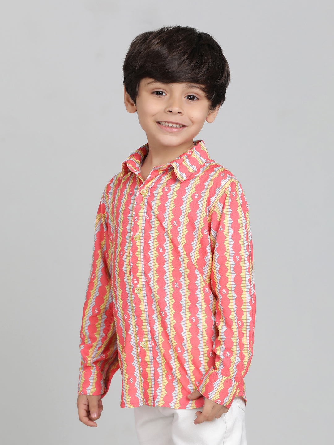 Boys Pink Viscose Casual Printed Full-Sleeve Shirt