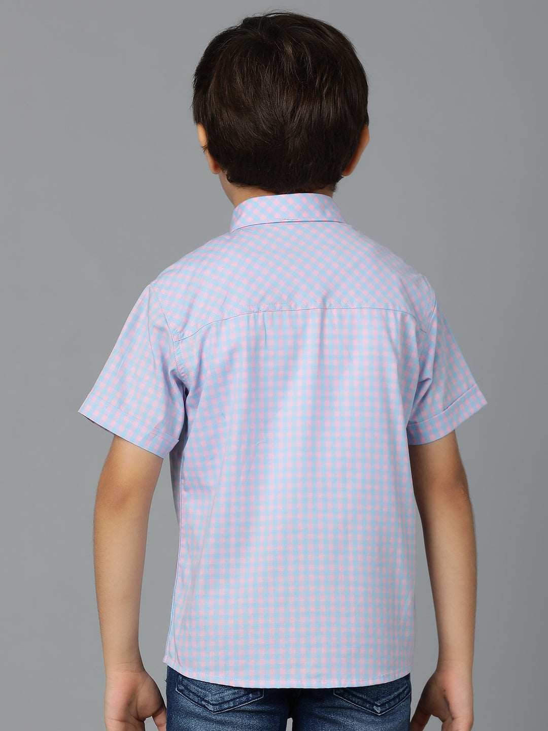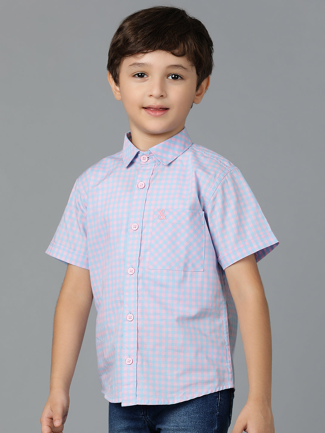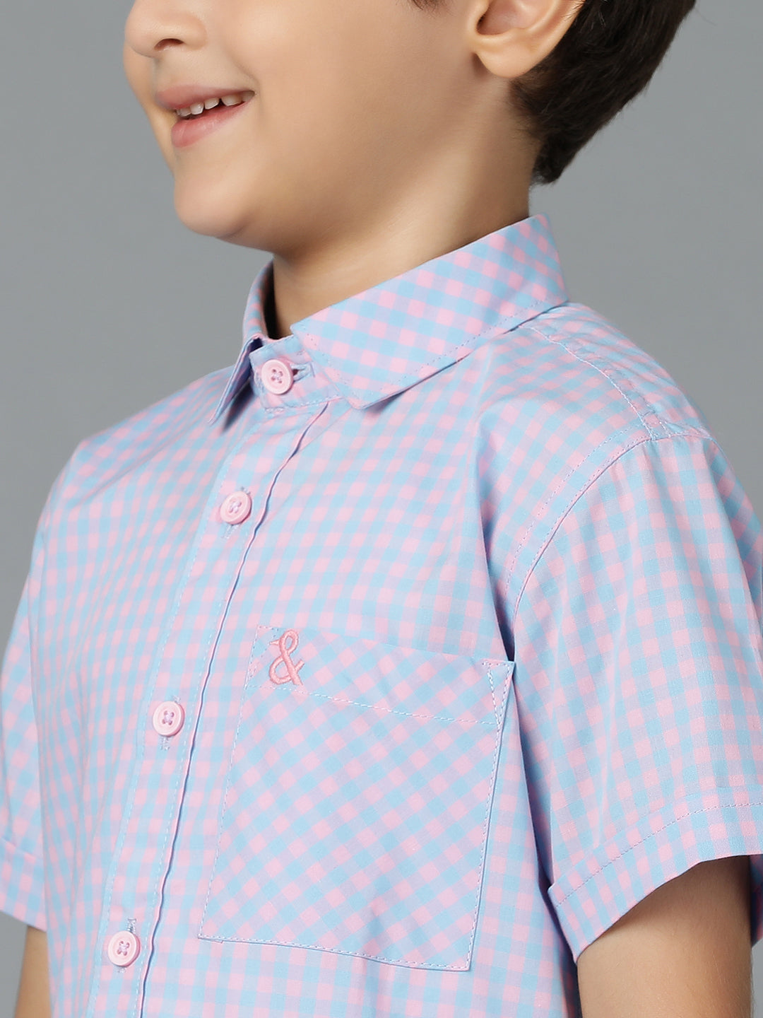 Boys Pink & Sky Blue Checked Cotton Regular Fit Shirt