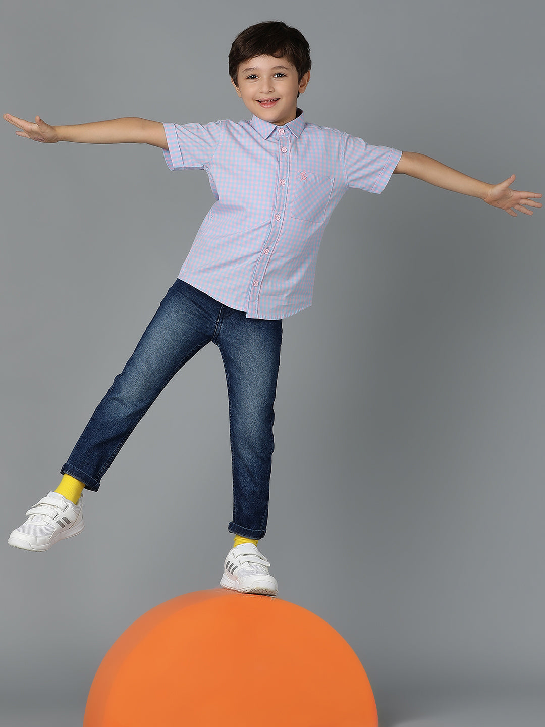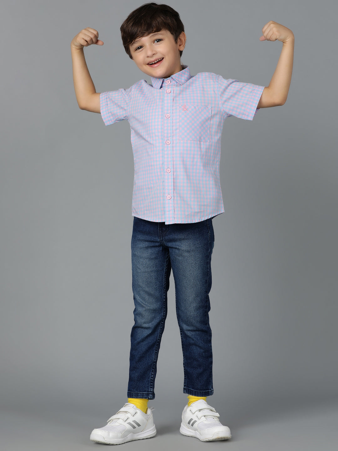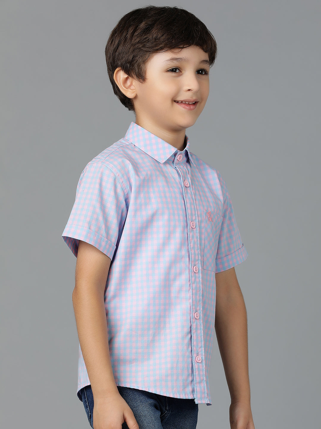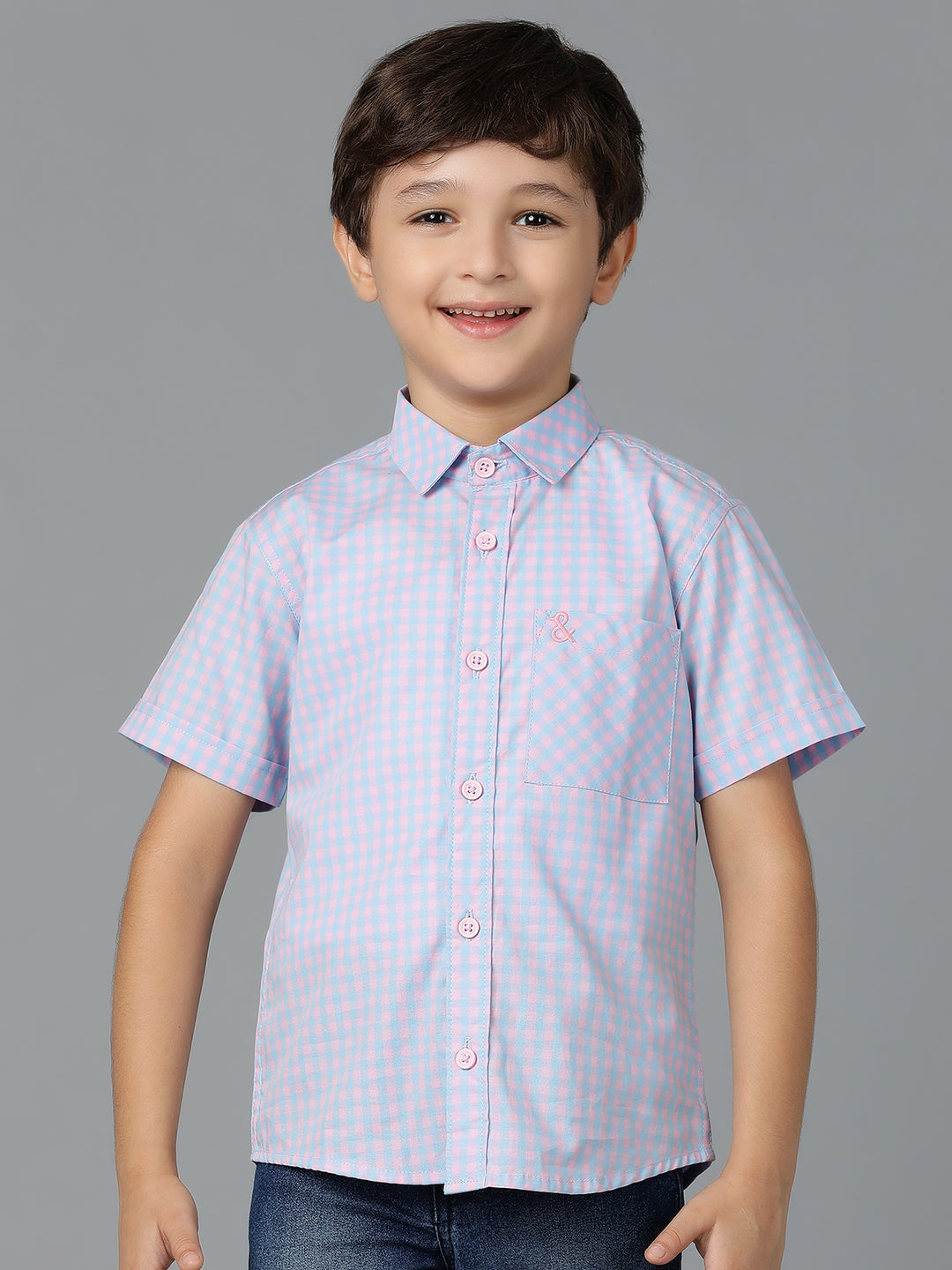 Boys Pink & Sky Blue Checked Cotton Regular Fit Shirt