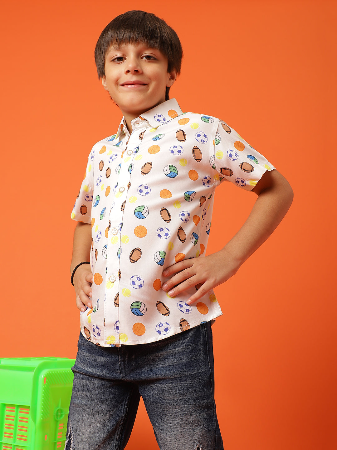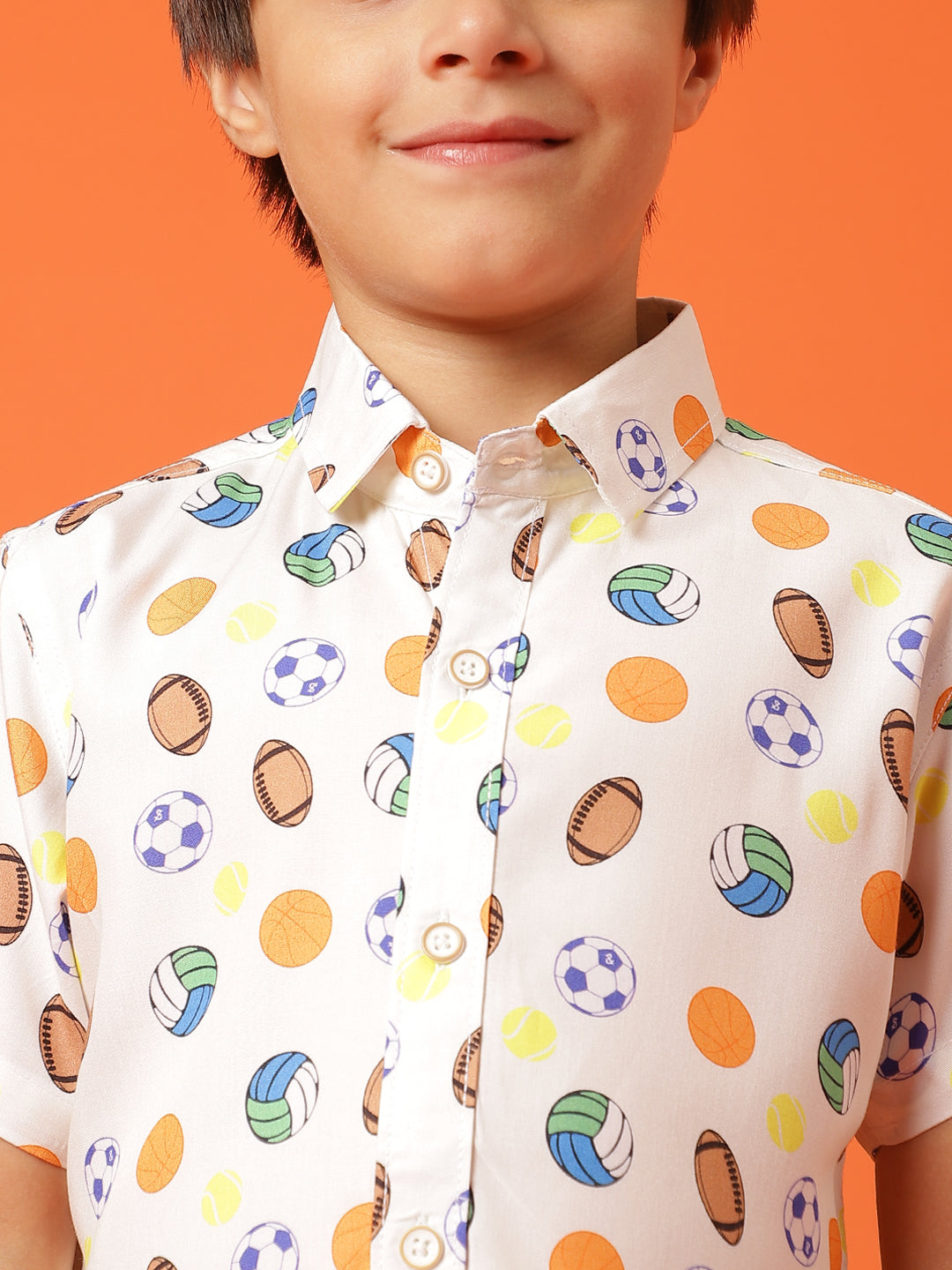 Boys Printed Off-White Rayon Regular Fit Half Sleeve Shirt