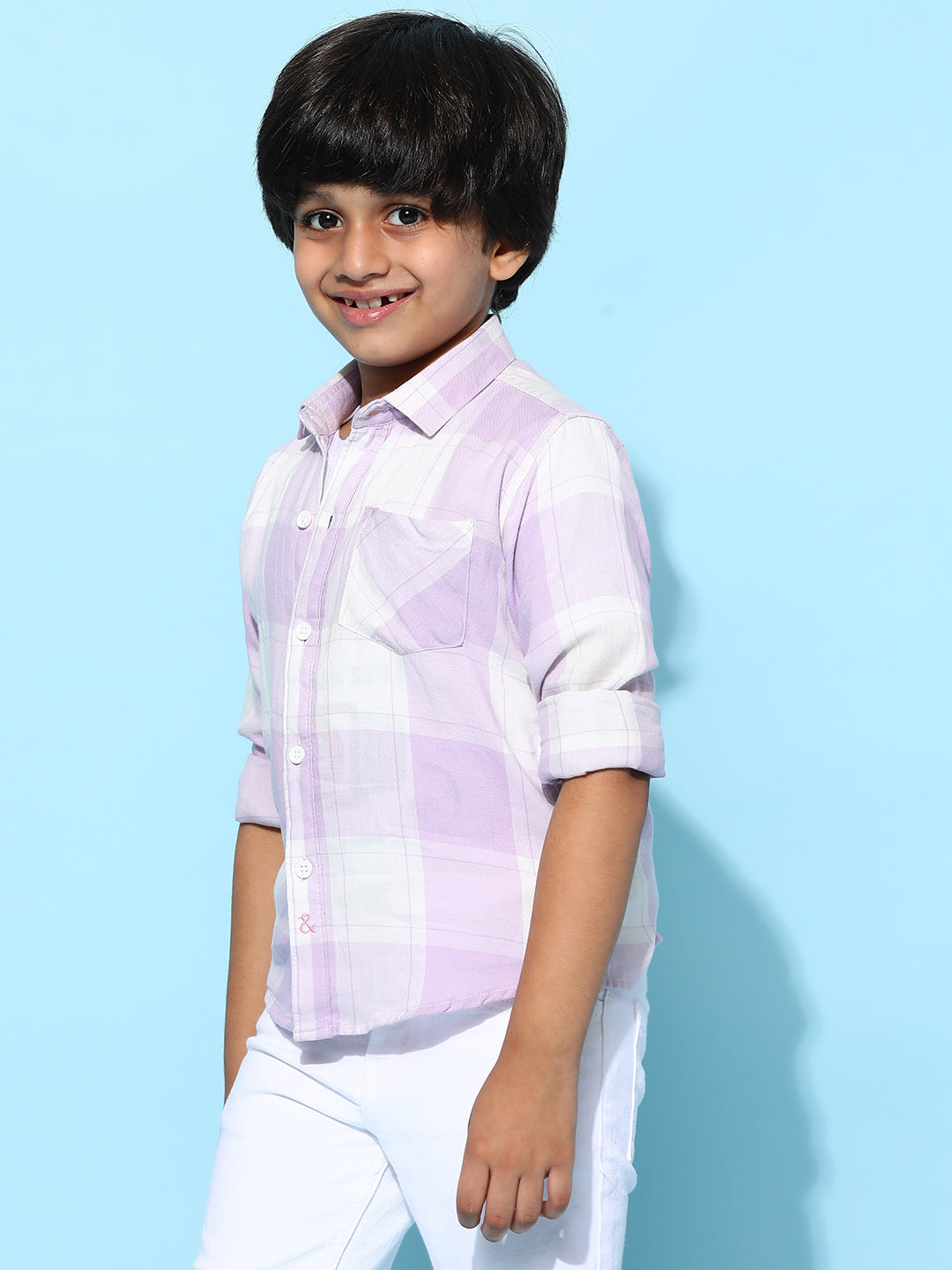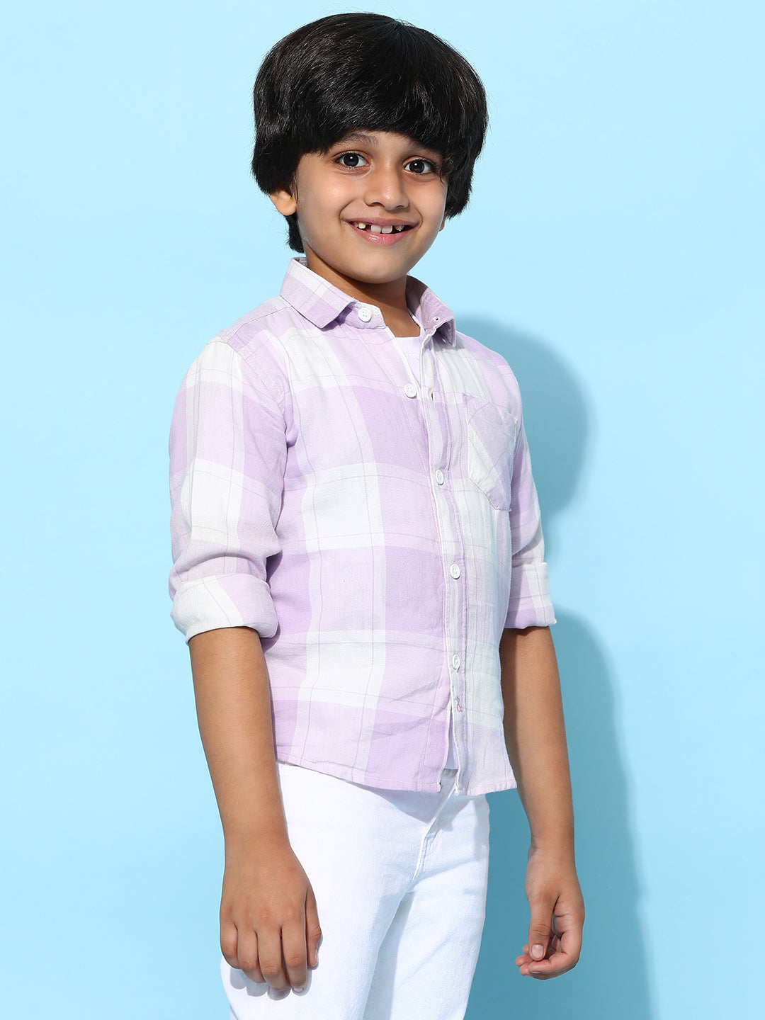 Boys Purple 100% Cotton Regular Fit Checked Shirt