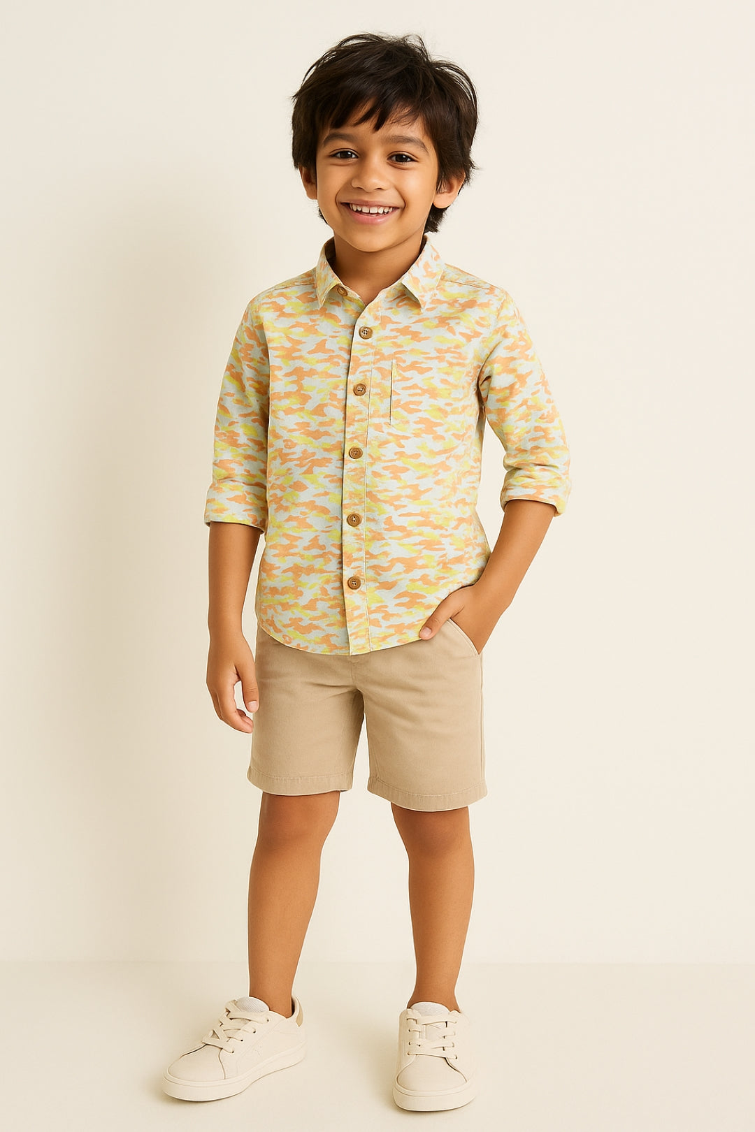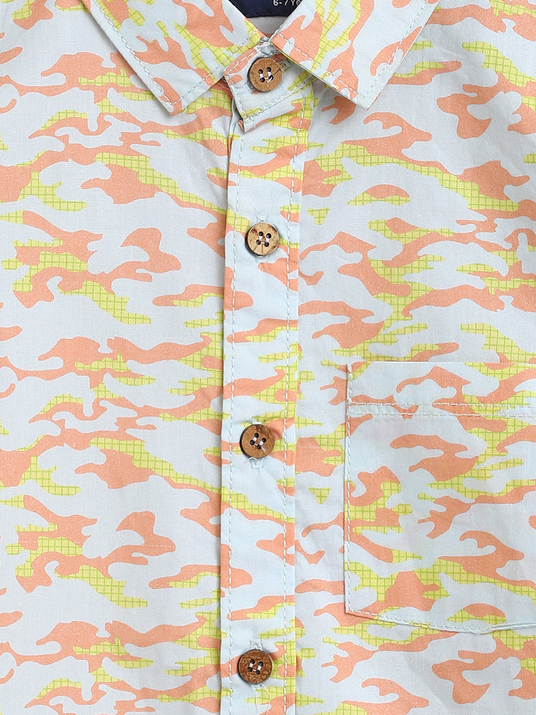Boys Sky Blue Cotton Printed Full Sleeves Regular Fit Shirt
