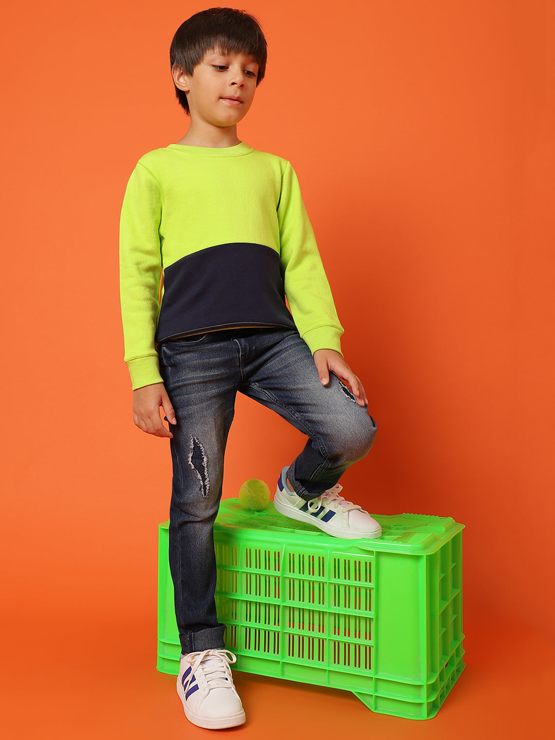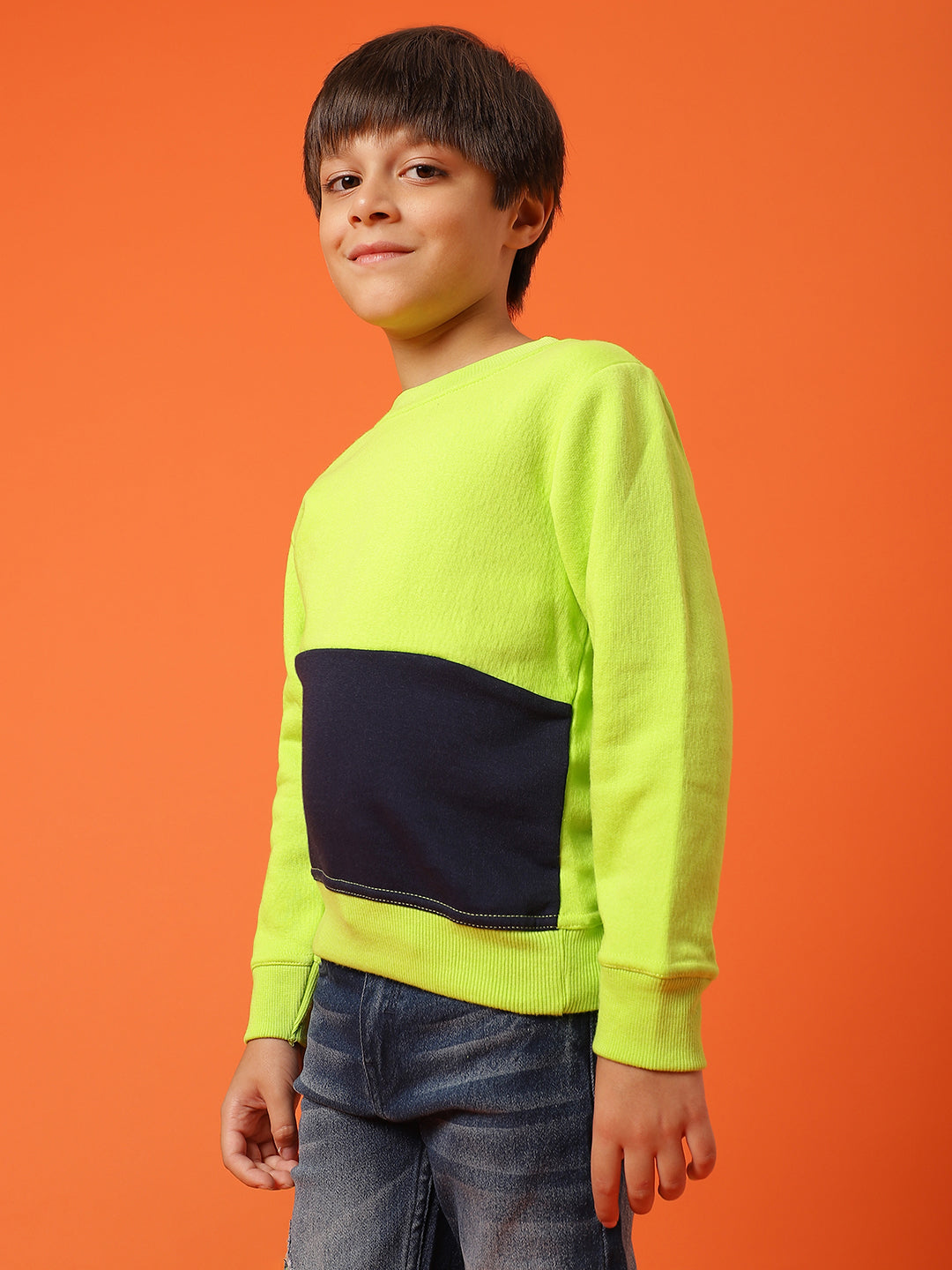 Boys Solid Green Neon Cotton Full Sleeve Regular Fit Sweatshirt