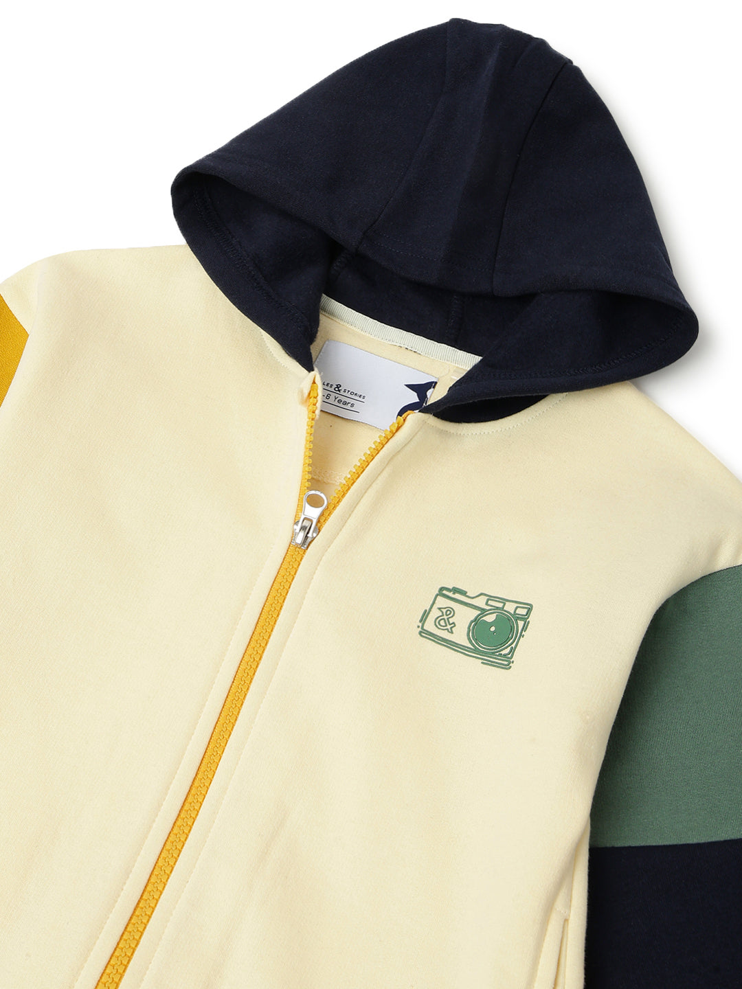 Boys Off White Cotton Printed Hooded Oversized Sweatshirt