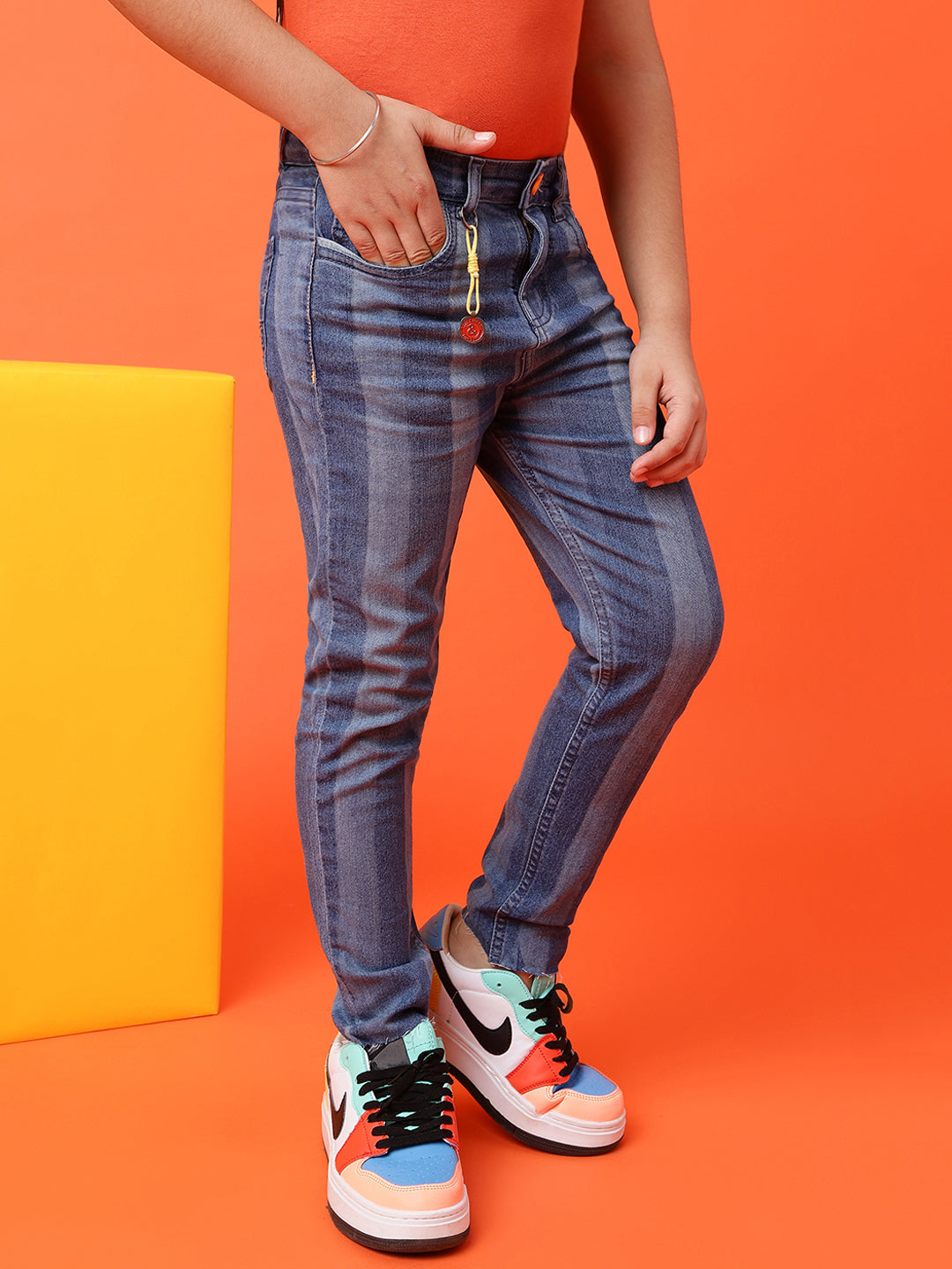 Stretchable Denim Lycra Fabric: Ensures flexibility and all-day comfort for active kids.