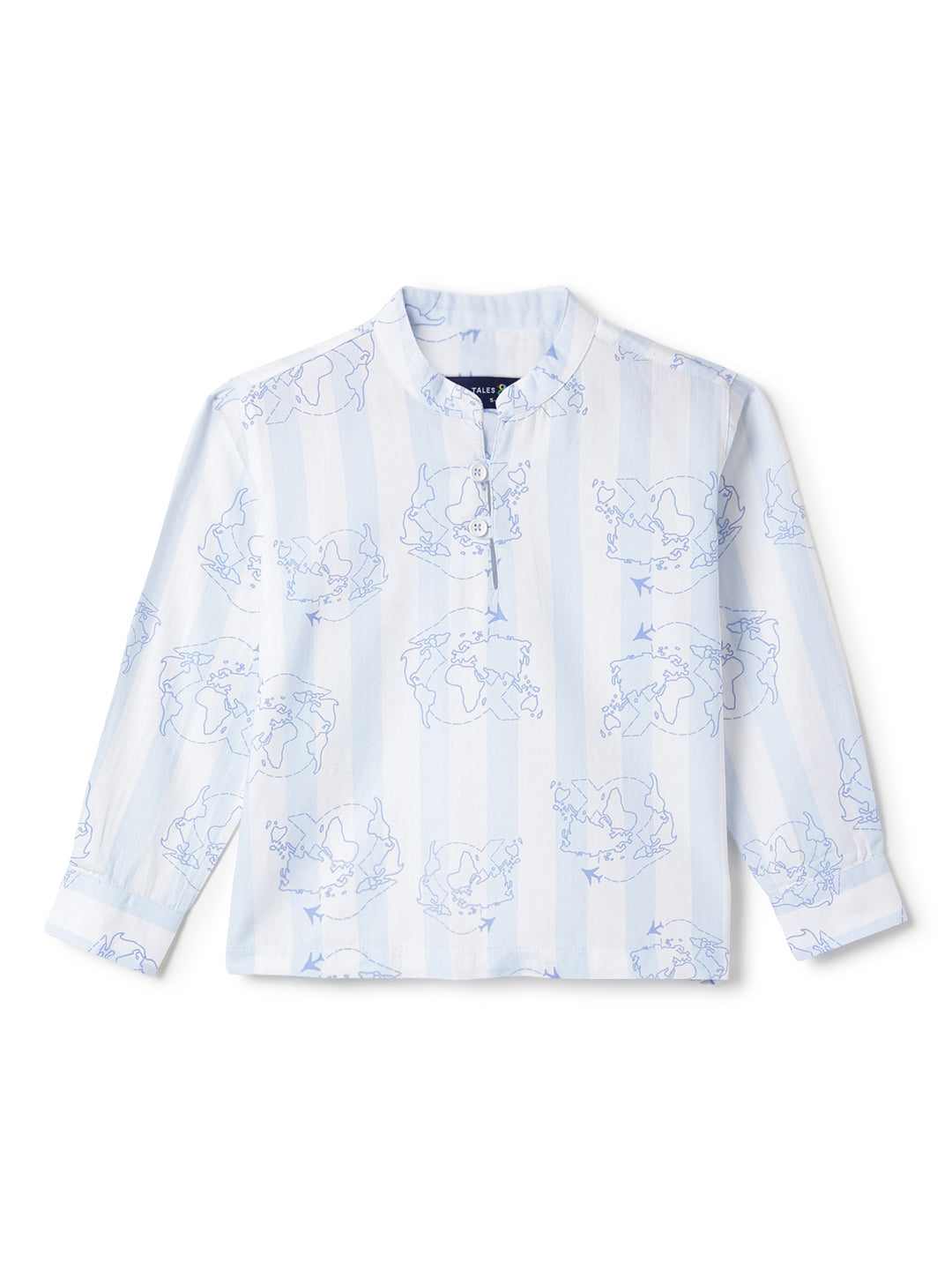 Boys Sky Blue Cotton Printed Kurta Shirt