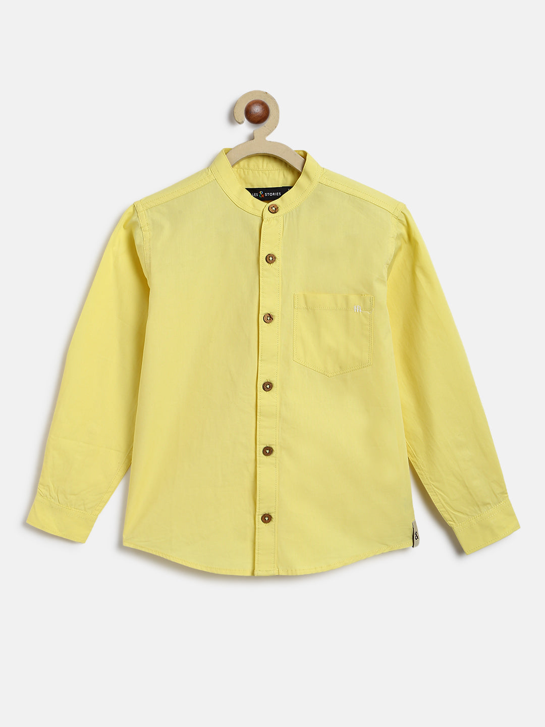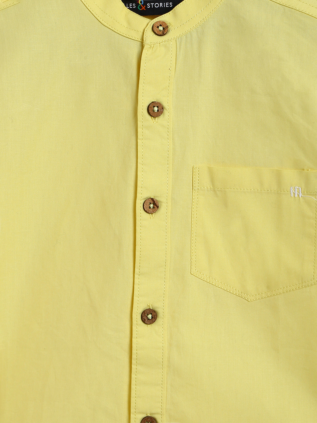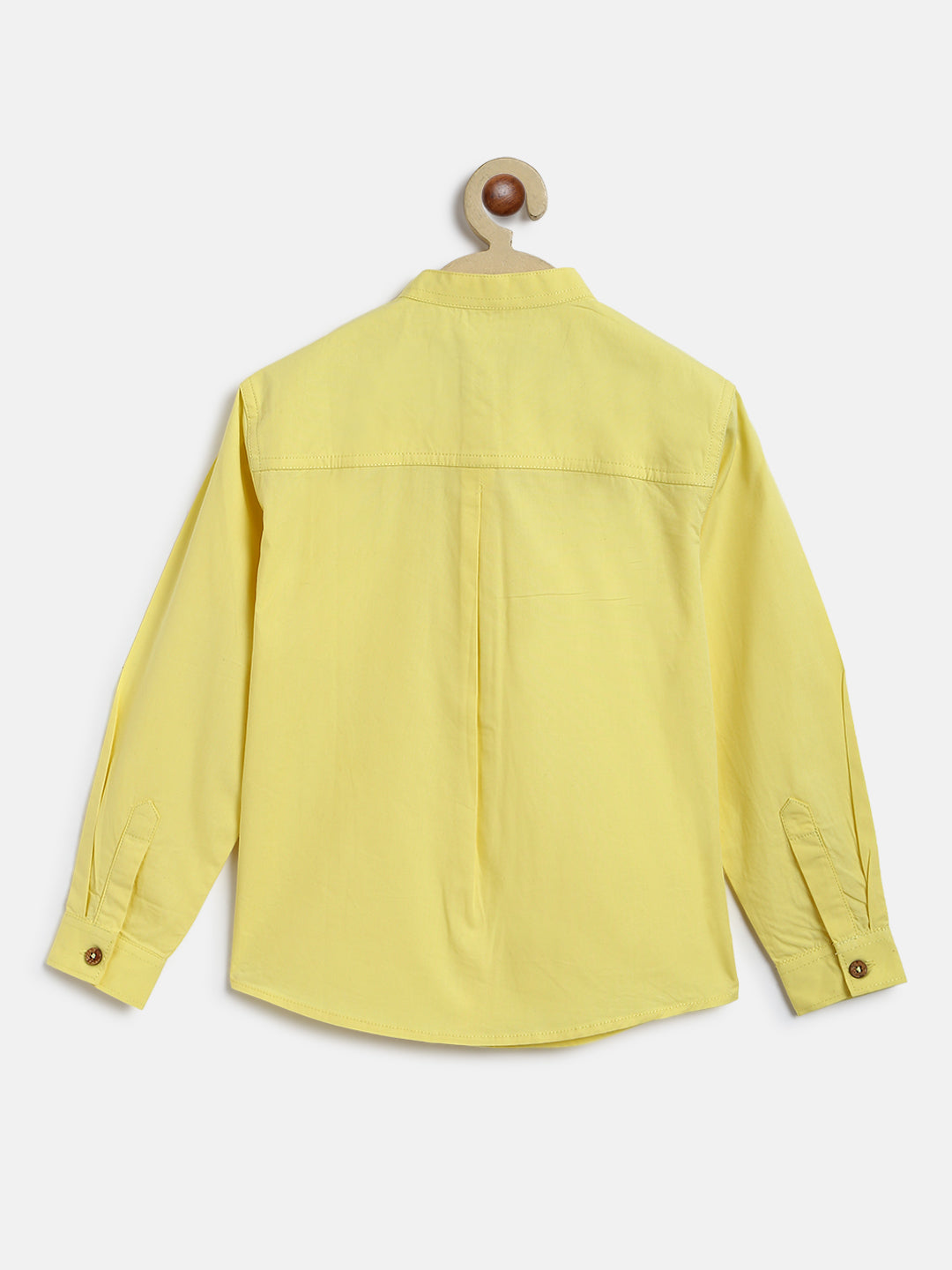 Boys Yellow Cotton Solid Full Sleeves Regular Fit Shirt