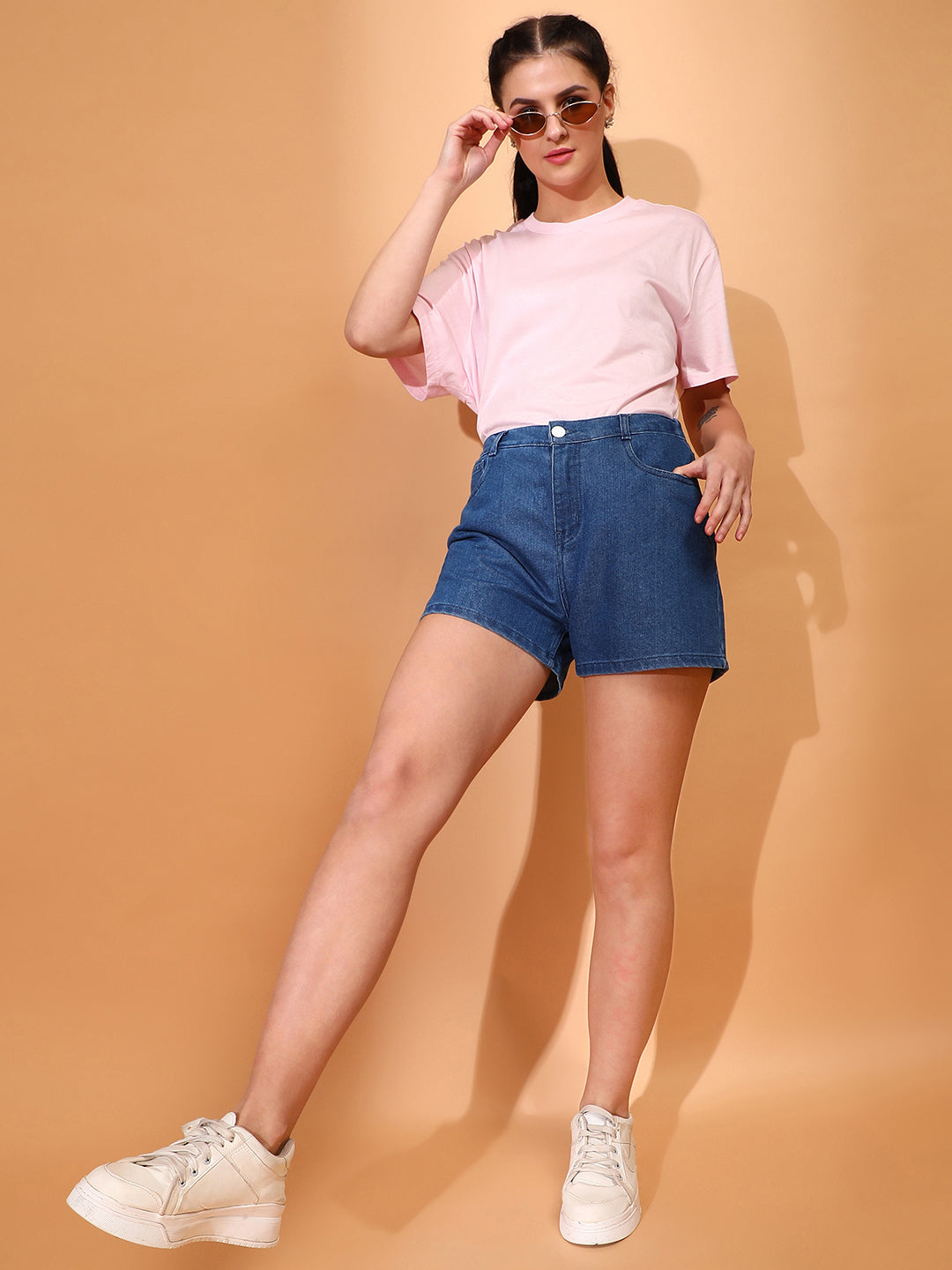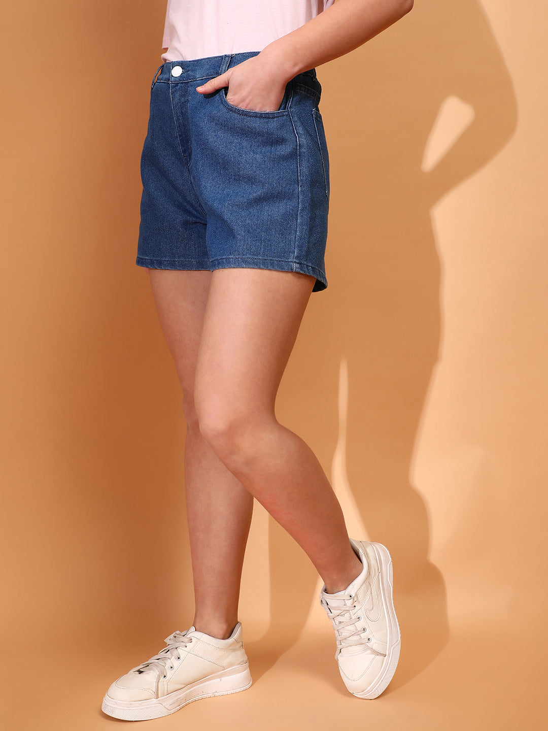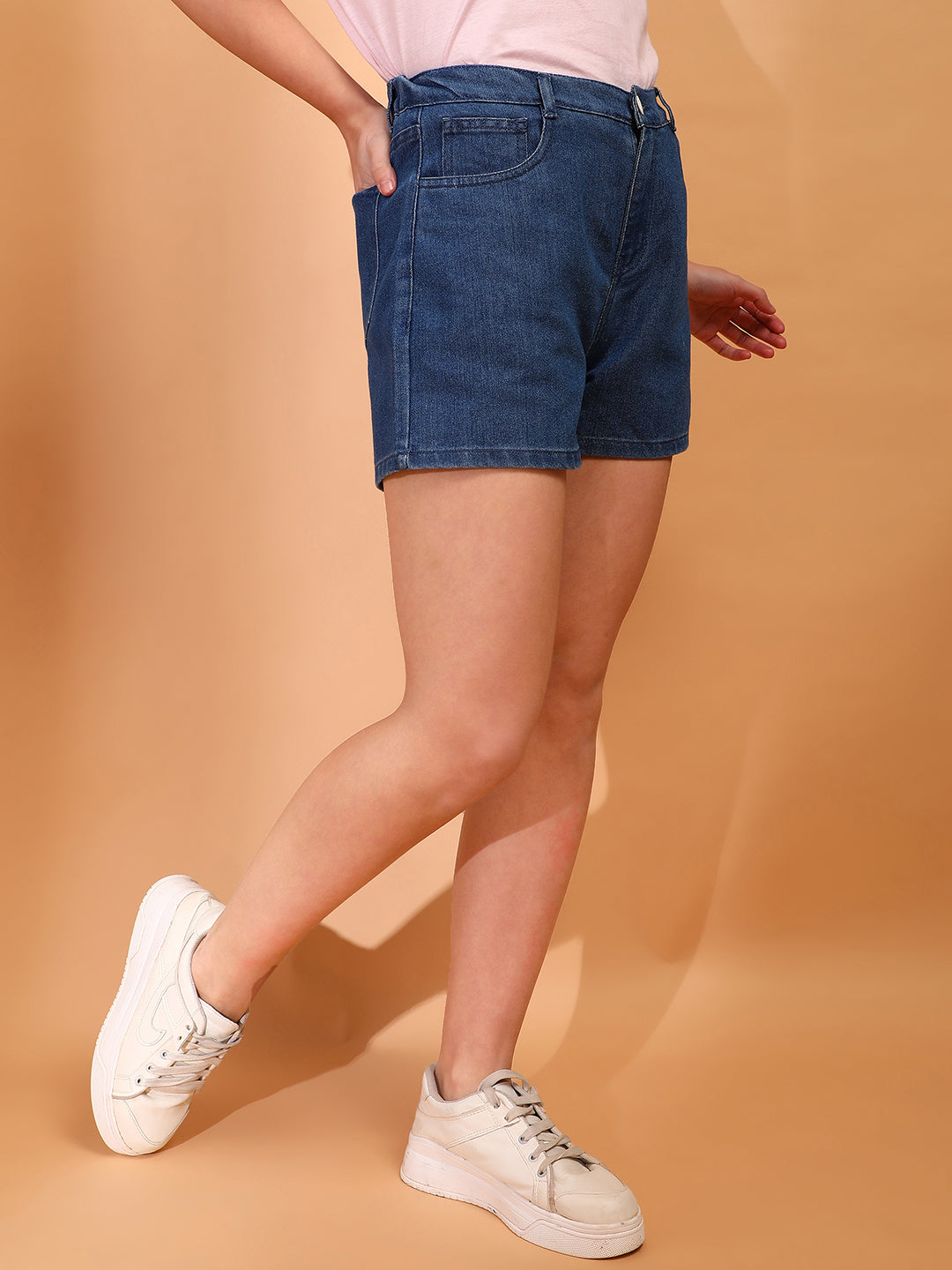 Women Denim solid Blue Shorts