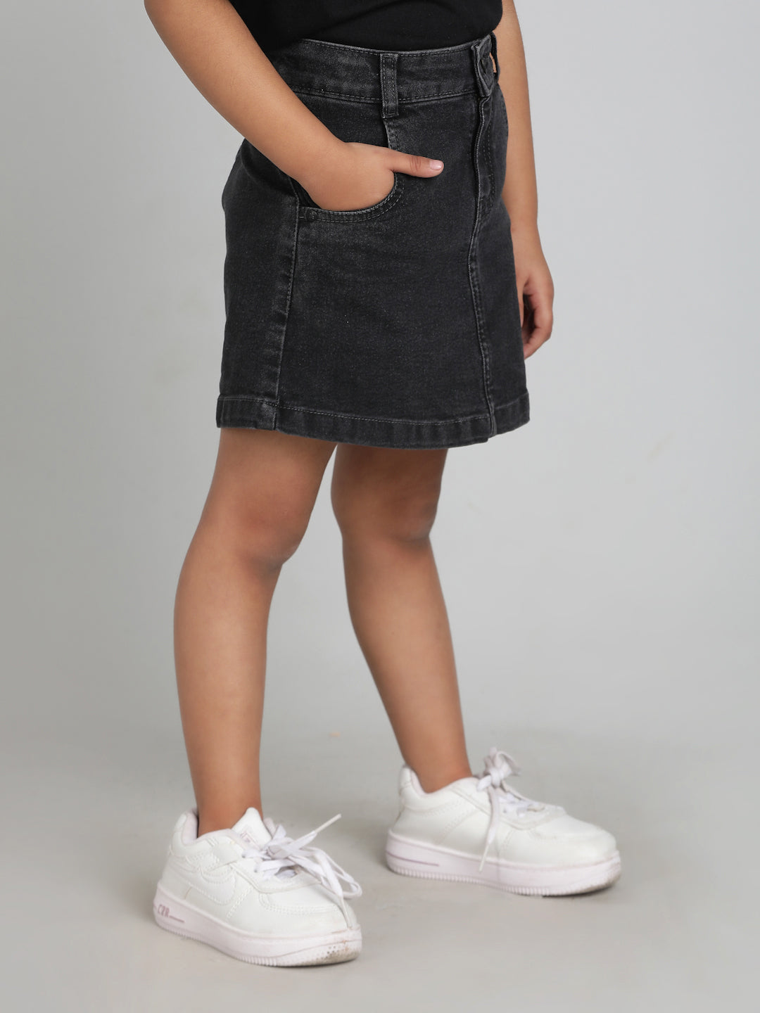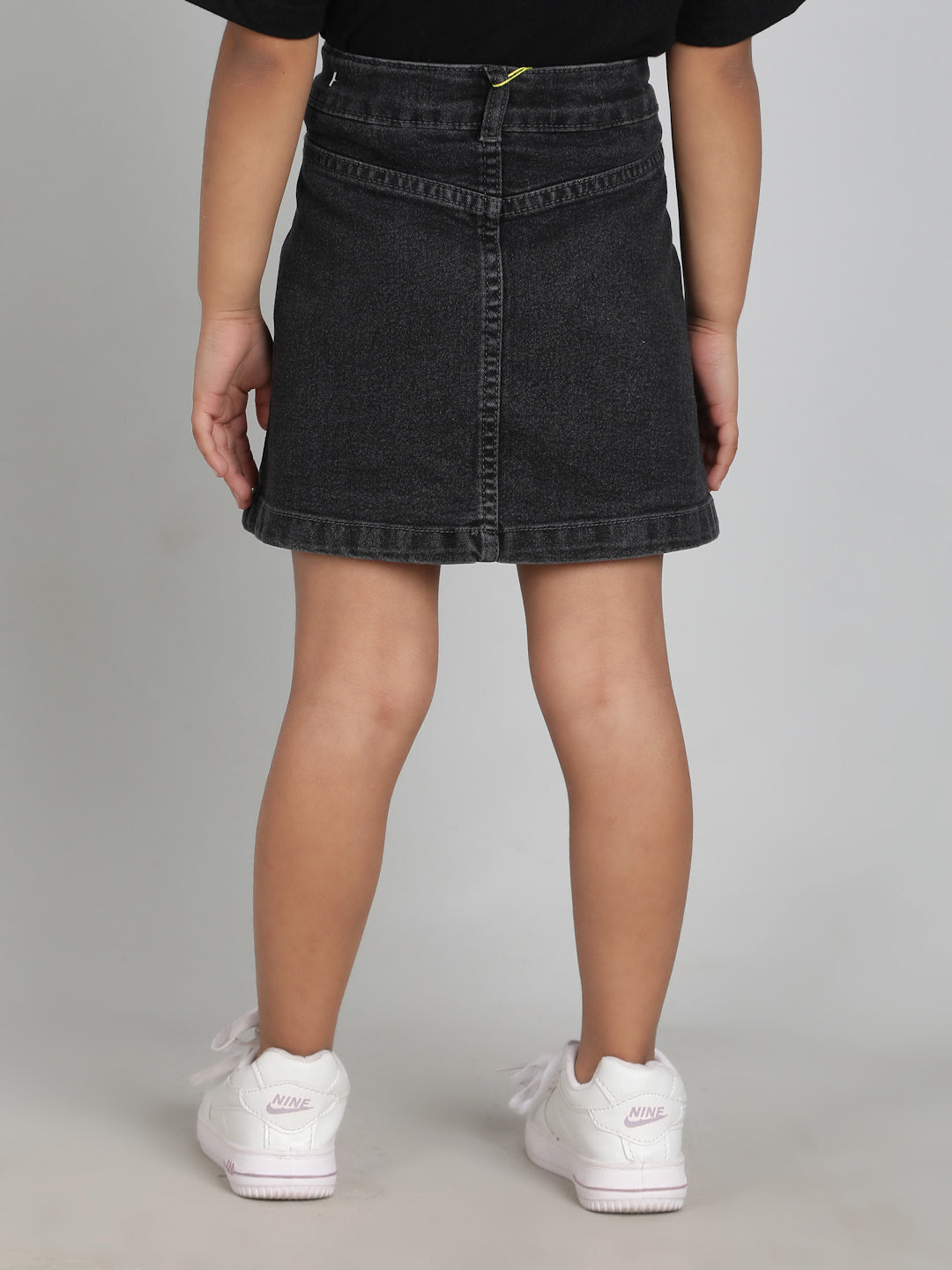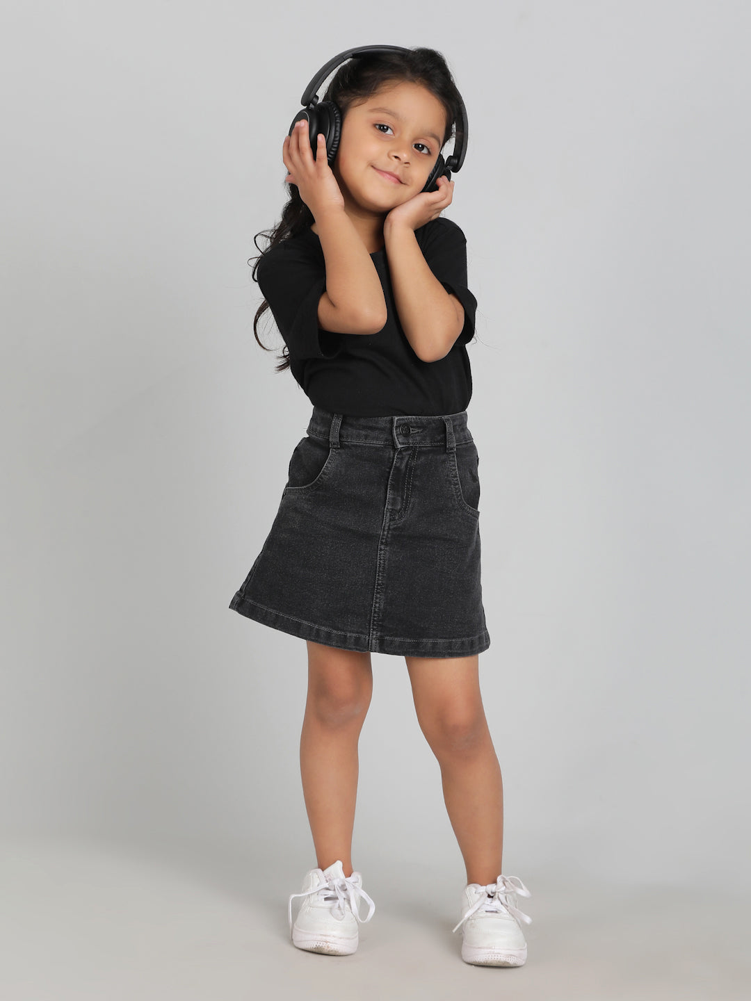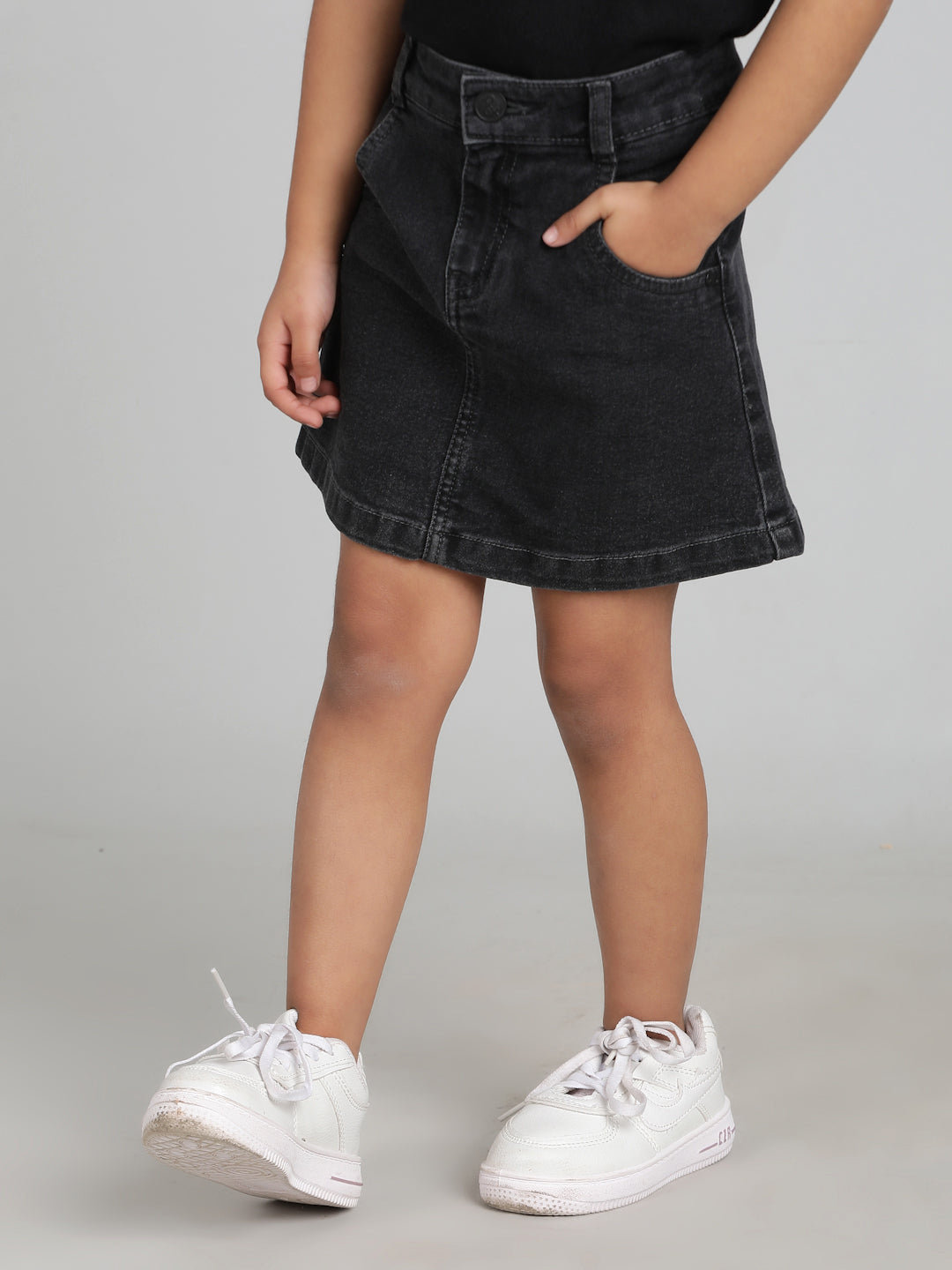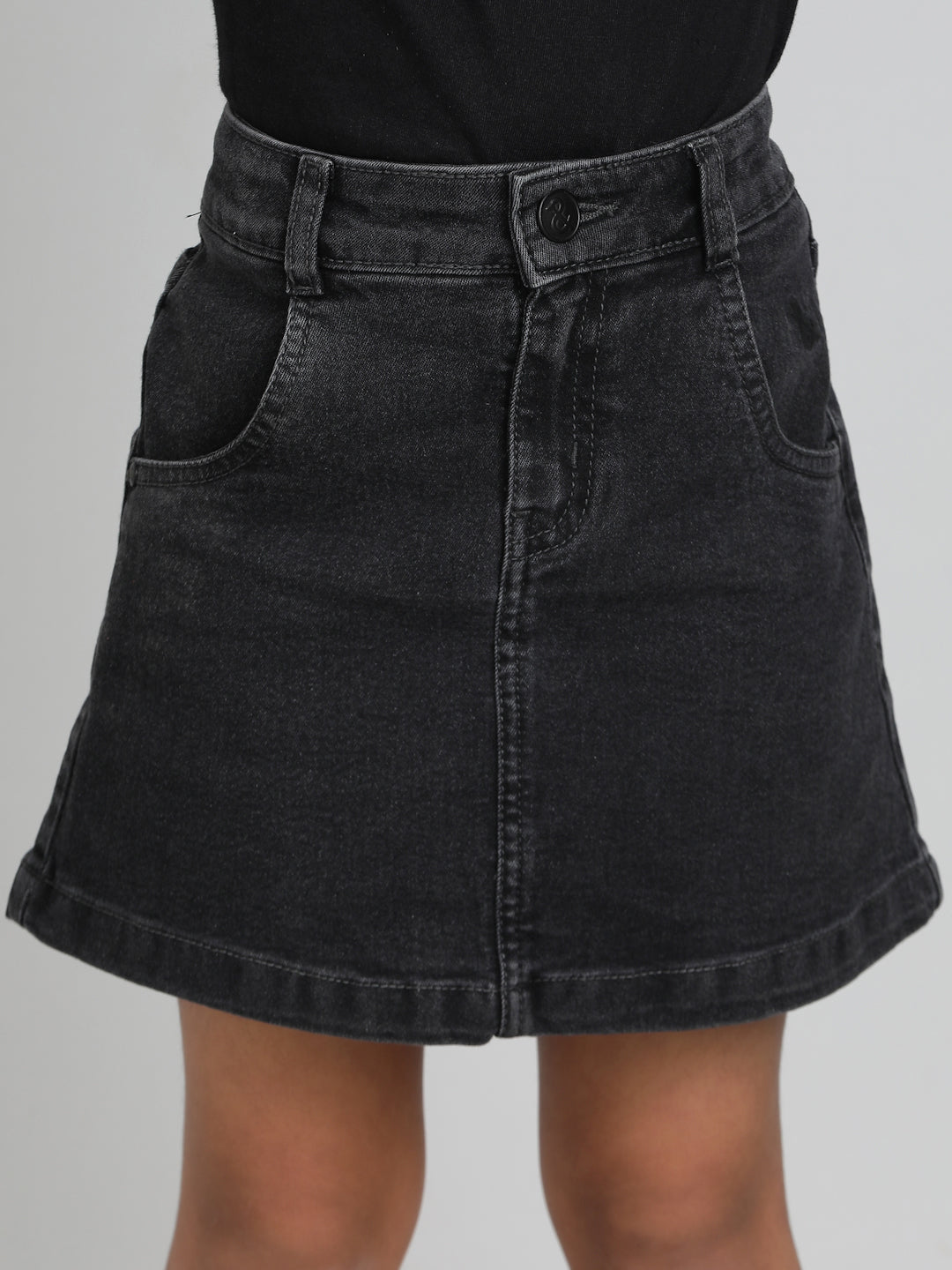 Girls Black A-Line Washed Lycra Above Knee Skirt